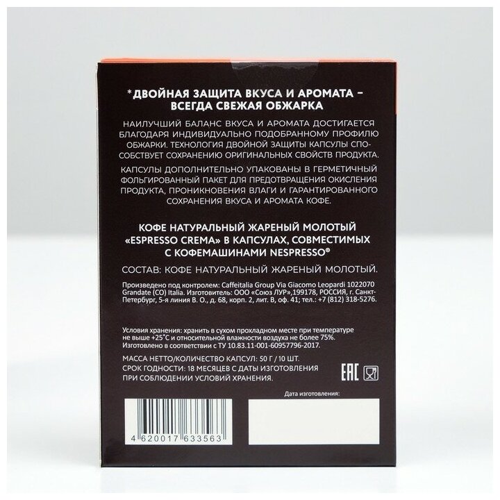 Кофе в капсулах Veronese Espresso Crema, стандарт Nespresso, 10 капсул интересное: