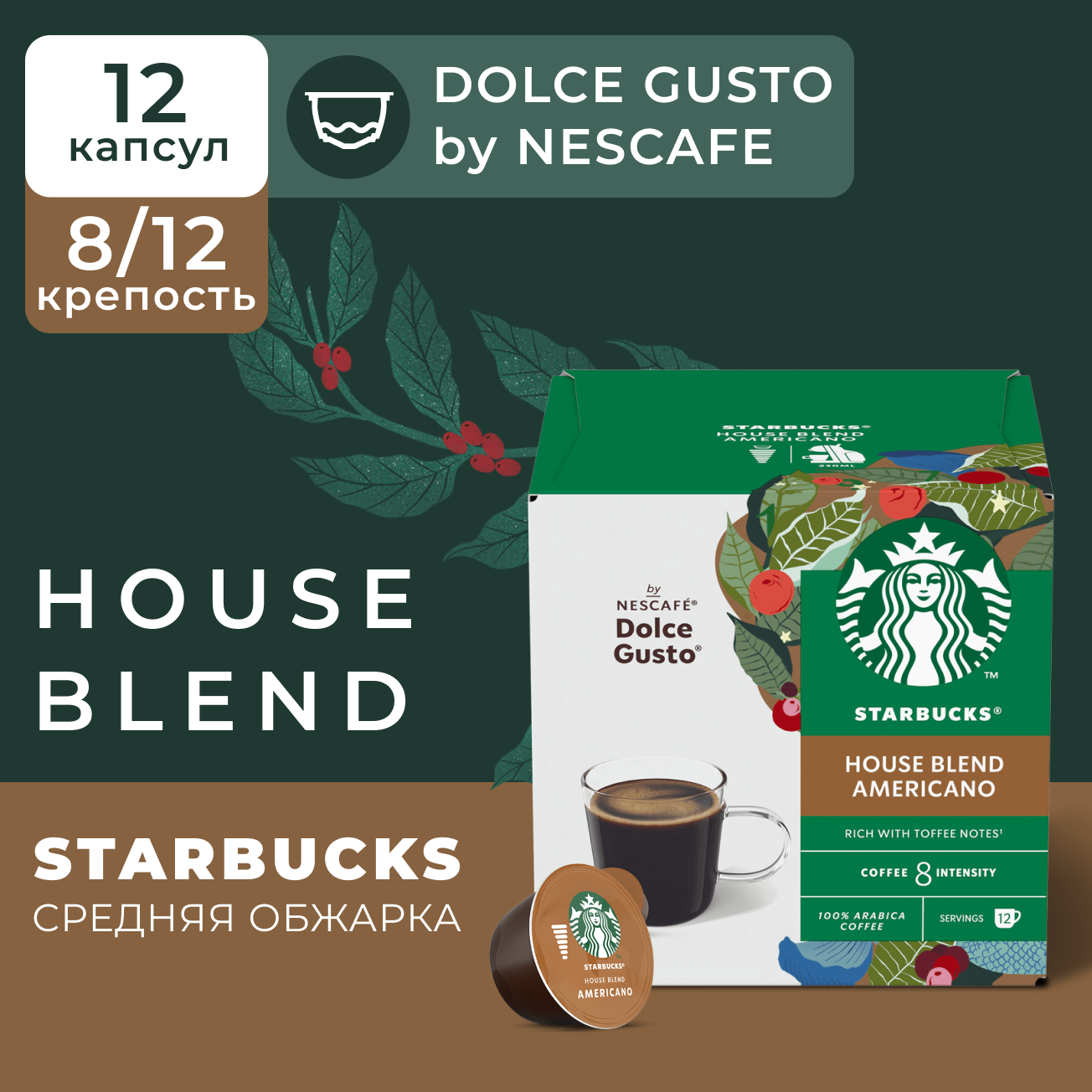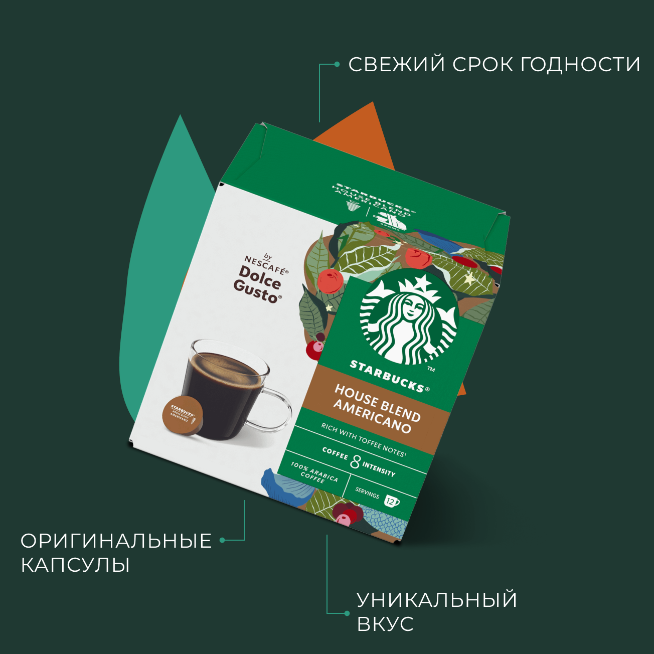 Кофе в капсулах Starbucks Dolce Gusto Caps House Blend, Старбакс в капсулах для кофемашины Нескафе Дольче Густо, эспрессо, 12 штук