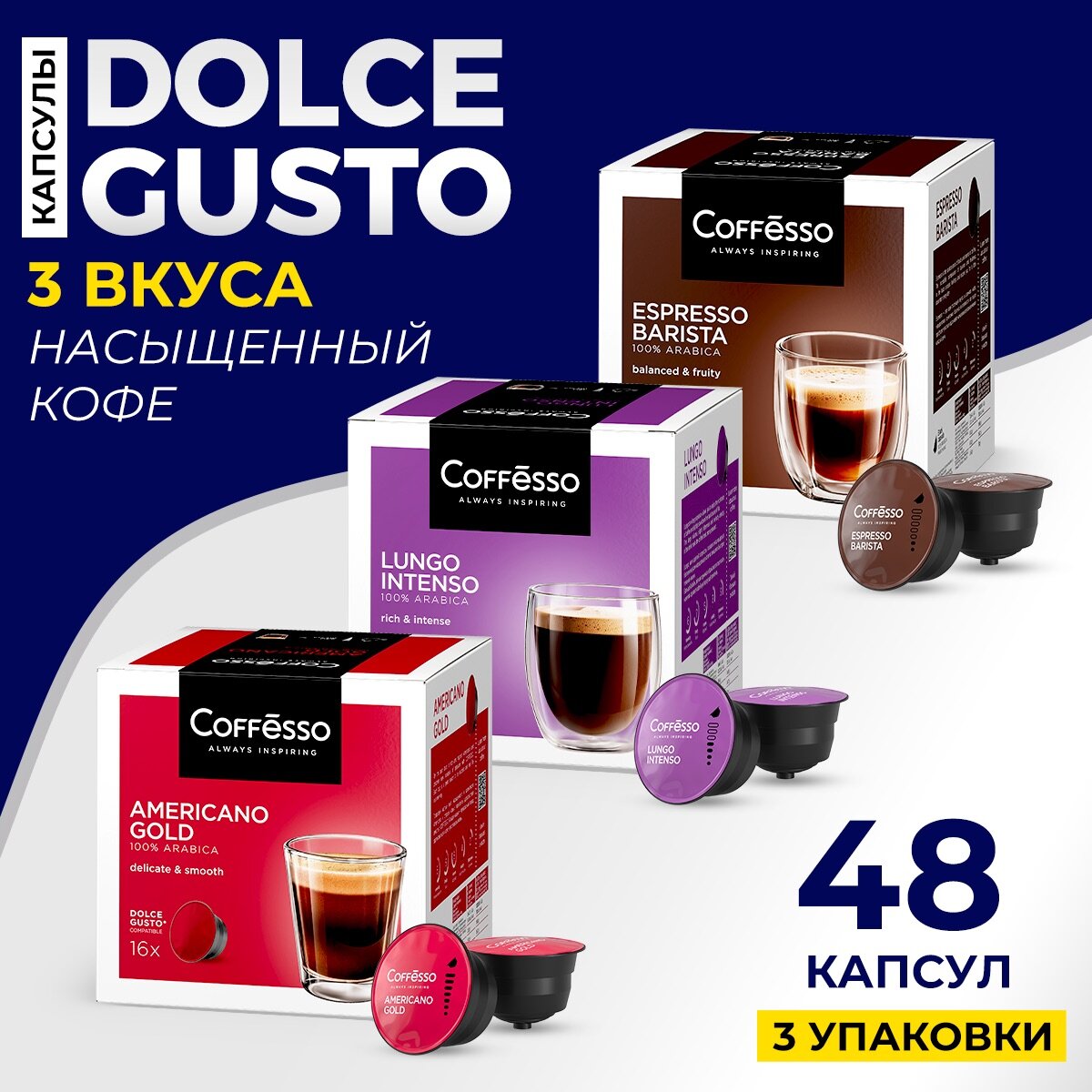 Кофе Coffesso Dolce Gusto (Americano,Espresso,Lungo) sto (Americano,Espresso,Lungo), ассорти набор, 3 уп х 16 капсул