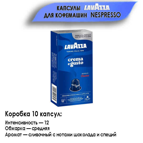 Капсулы кофе Lavazza ALU Crema Gusto Classico, для Nespresso, 12 интенсивность, 10шт