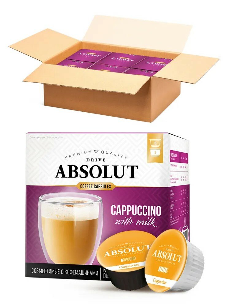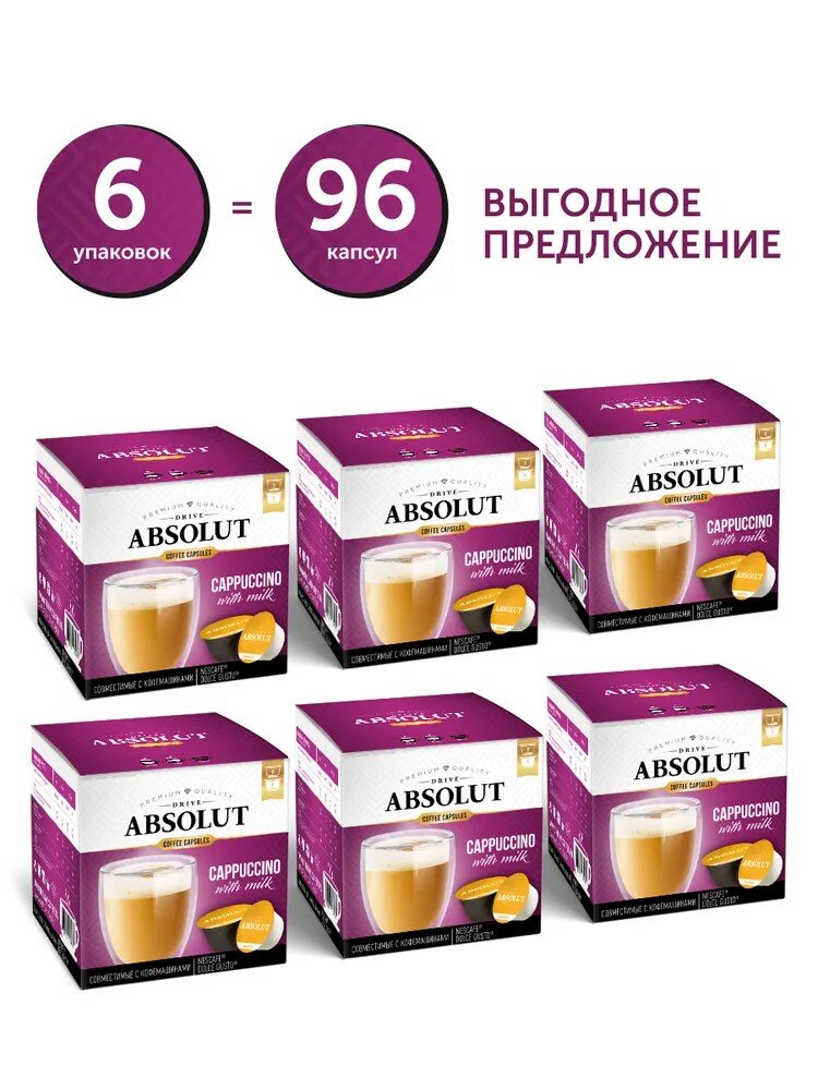 Кофе DRIVE ABSOLUT Капучино для капсульных кофемашин Дольче Густо (Dolce Gusto) 6 коробок по 16 капсул (96 капсул) интересное:
