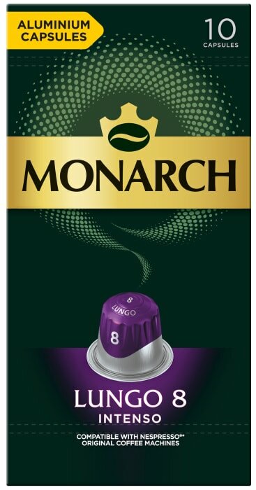 Кофе в алюминиевых капсулах Monarch Lungo #8 Intenso, 10 штук интересное: