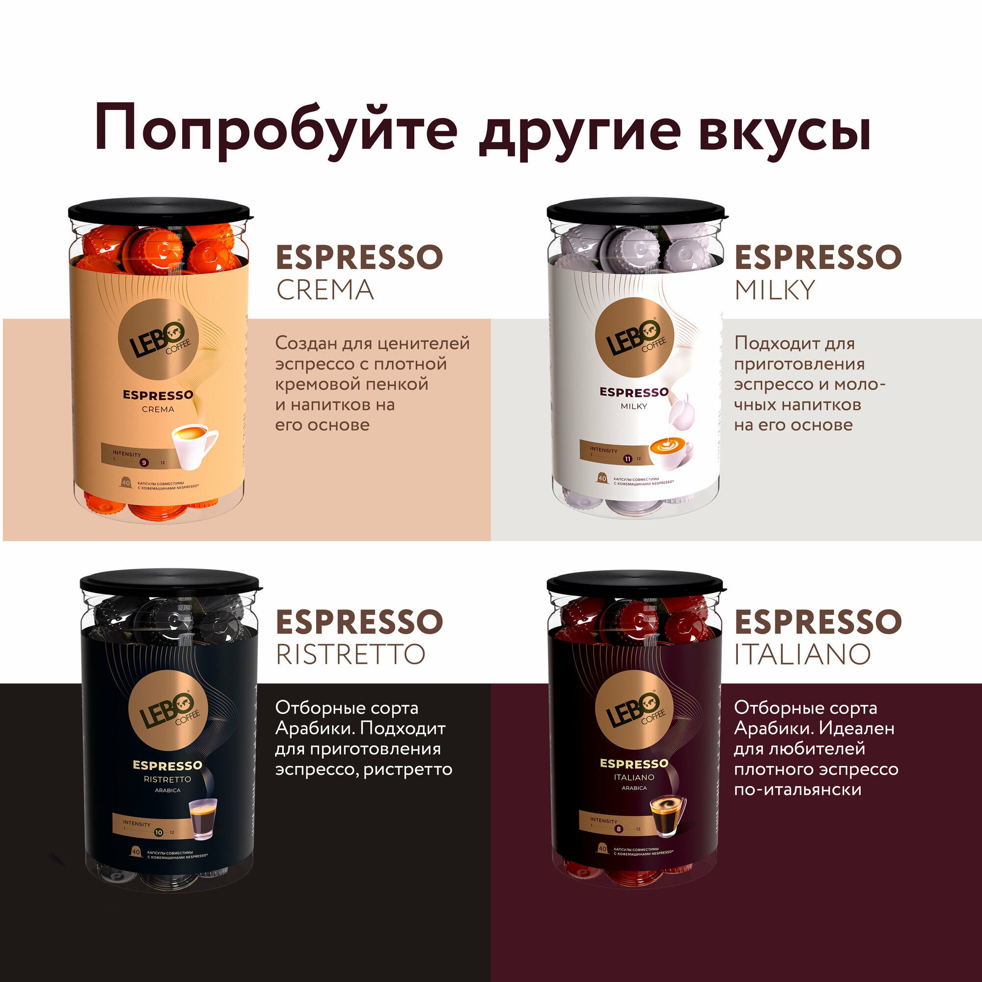 Кофе в капсулах Lebo Espresso MILKY Арабика 50%, Робуста 50% , 55 г (10 шт), бленд под молоко, Совместимы с кофемашинами Nespresso