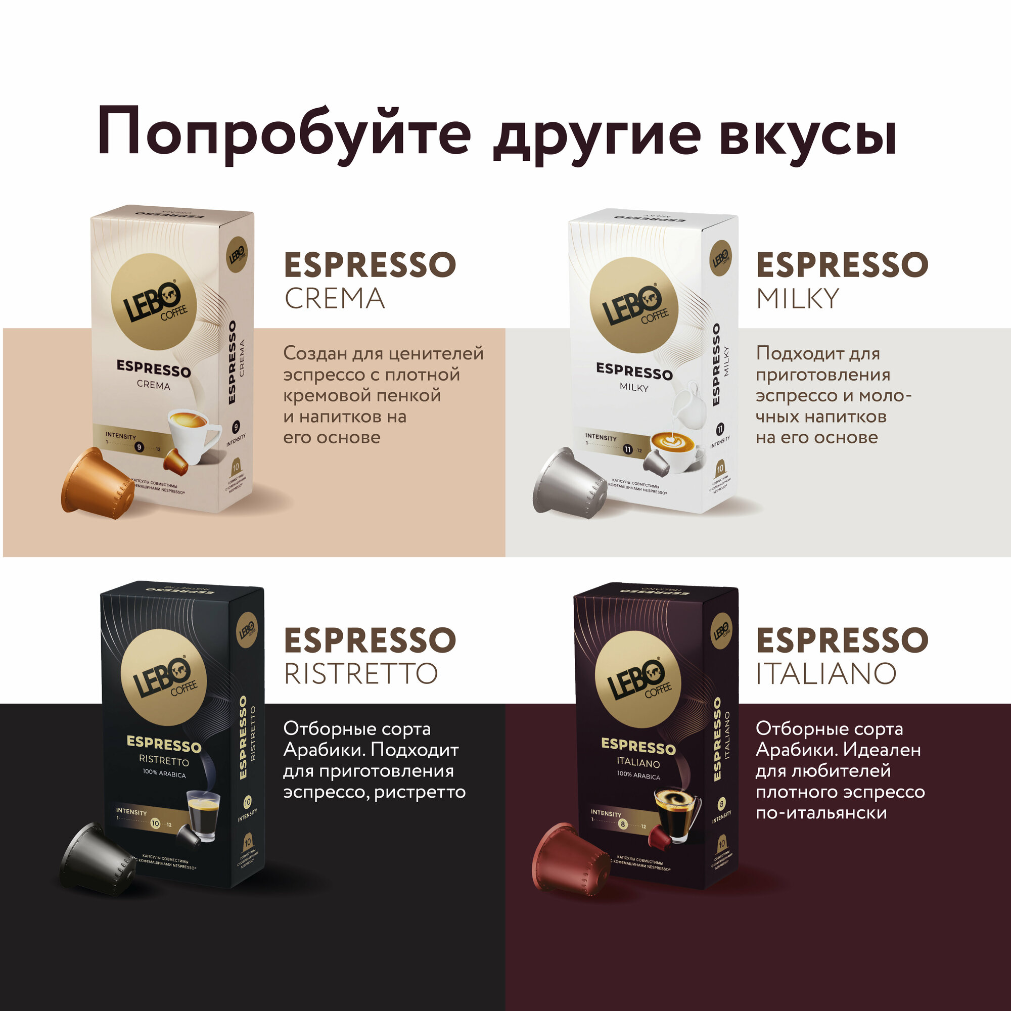 Кофе в капсулах LEBO "Espresso Milky" для кофемашин Nespresso, 10 порций
