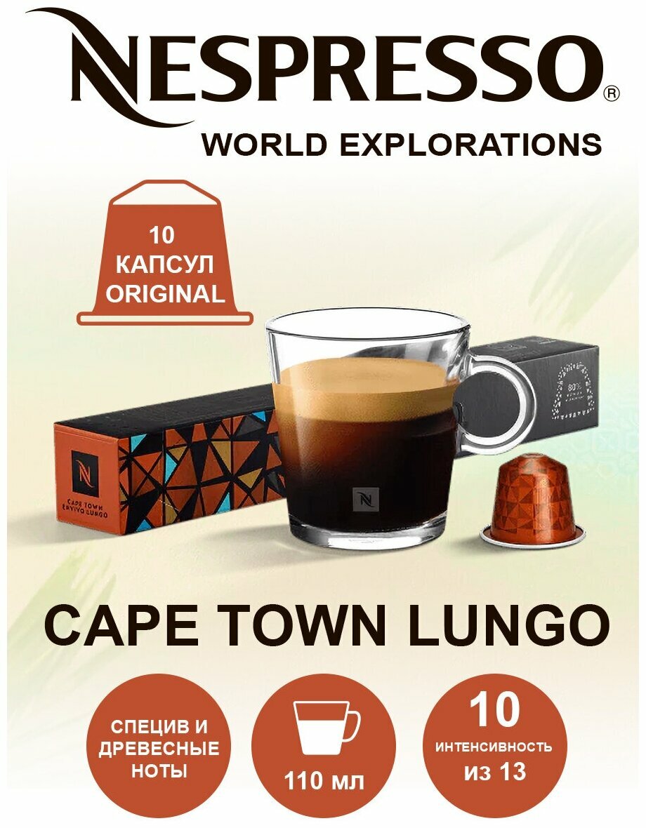 Оригинальные капсулы кофе Nespresso Cape Town (Кейп-таун, Envivo) Lungo, интенсивность 10, 1уп, 10 капсул