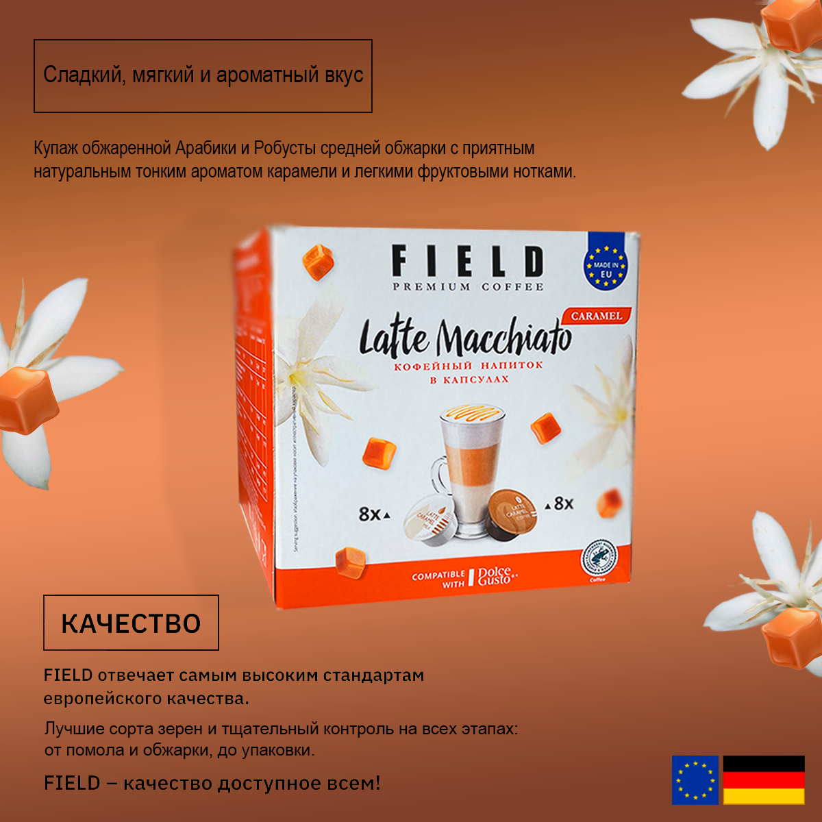Кофе капсулы Field Dolce Gusto Latte macchiato caramel набор 96шт