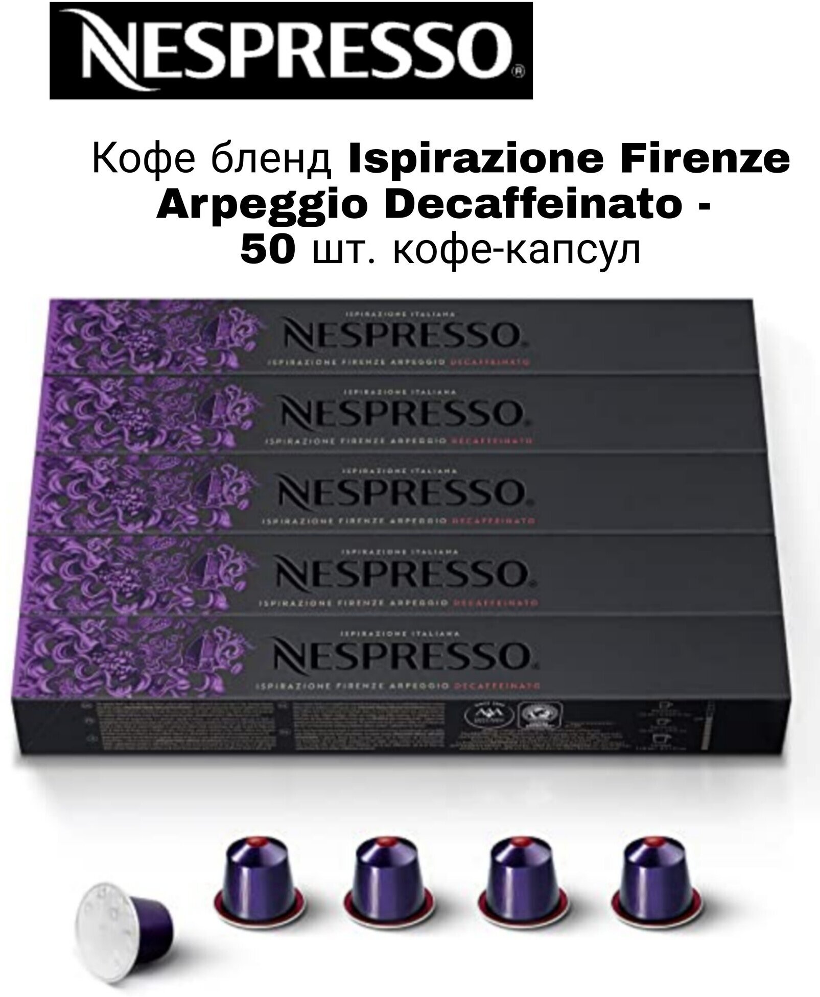Кофе в капсулах Ispirazione Firenze Arpeggio Decaffeinato. Неспрессо. 5 уп. по 10 капсул.