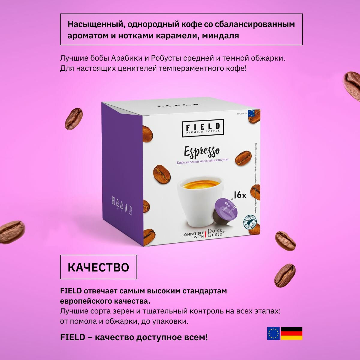 Кофе в капсулах FIELD "Espresso" для кофемашин Dolce Gusto, 16 порций, германия, ш/к 70010