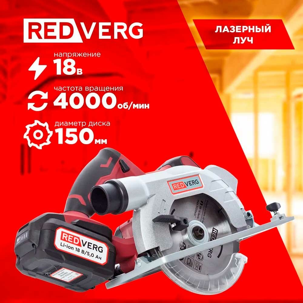 Пила дисковая аккумуляторная Redverg RD-CS18-50/U без аккумулятора и без зарядки интересное: