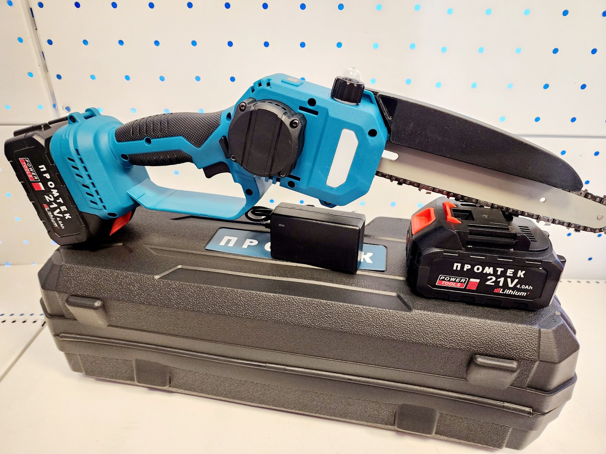 Аккумуляторная мини-пила цепная бесщеточная Промтек 21В 4Ач шина 8", кейс интересное: