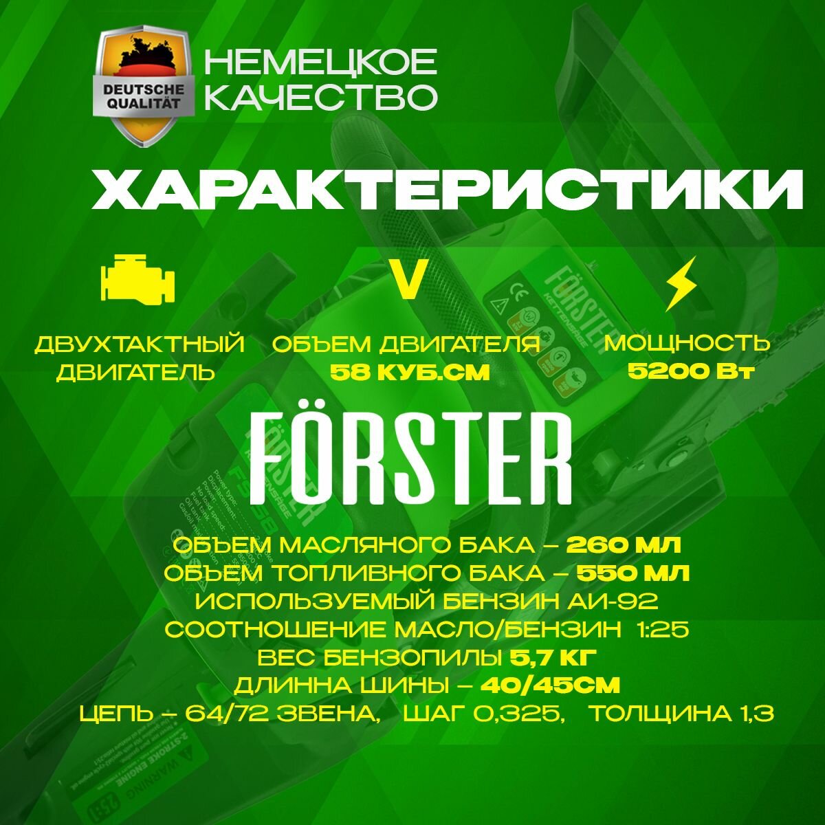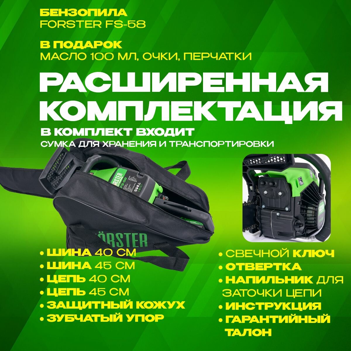 Бензопила FORSTER FS-58/пила цепная бензиновая/2 шины+2цепи в комплекте интересное: