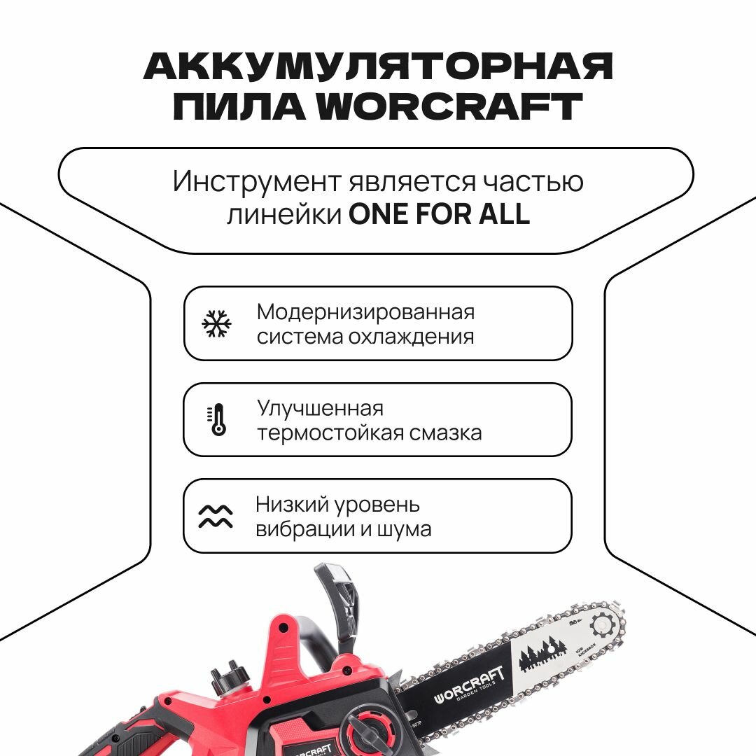 WORCRAFT Мощная Электропила цепная аккумуляторная с автоматической смазкой цепи/ шаг 3/8" с цепью 40 Зв.+АКБ CLB-20V-4.0 интересное: