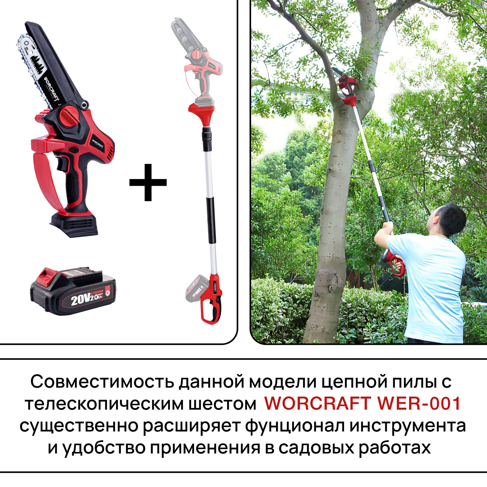 WORCRAFT мощная Пила аккумуляторная цепная CHS-S20LIBPM 800 Вт, шина 6" цепь, аккум.1+ Машинное масло/Мини-пила садовая сучкорез интересное: