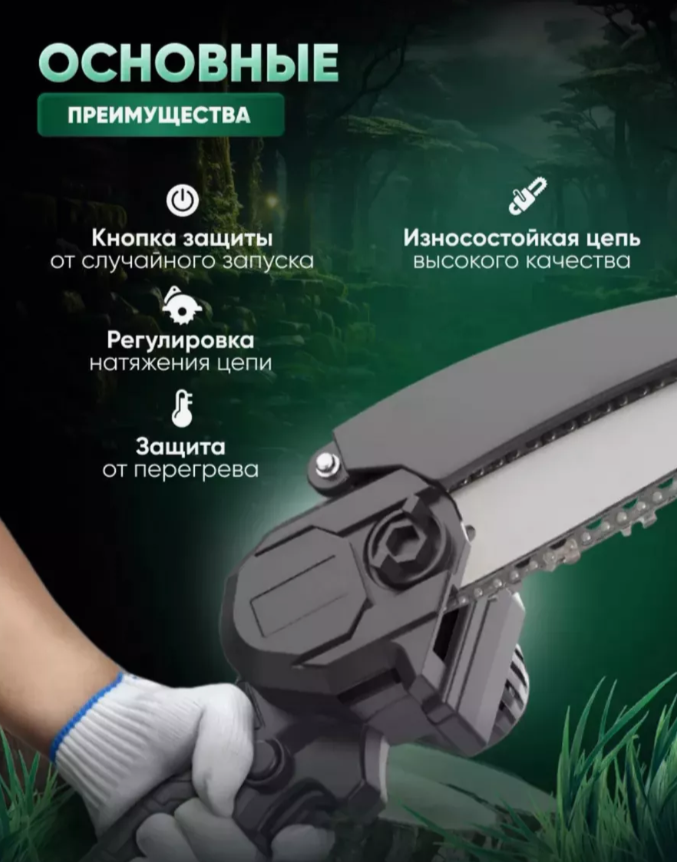 | Особенности конструкции | блокировка кнопки включения, мини-пила, прорезиненная рукоять |