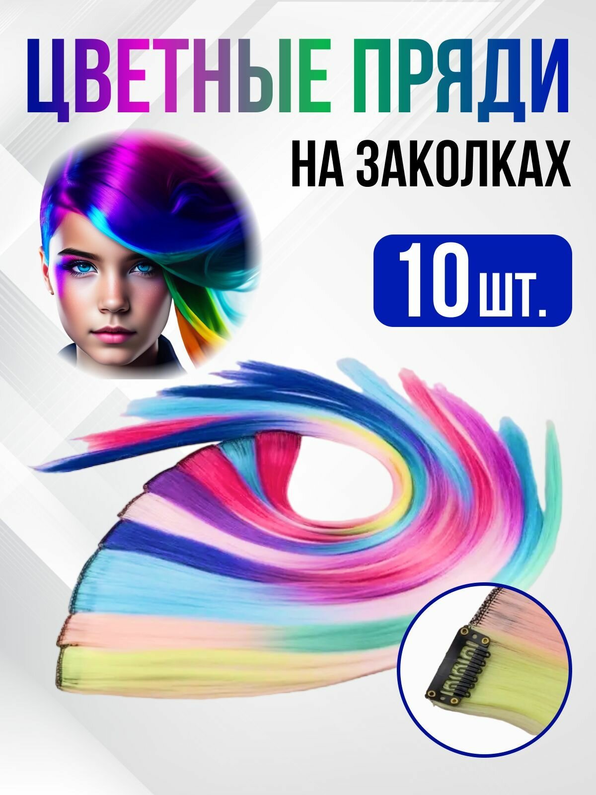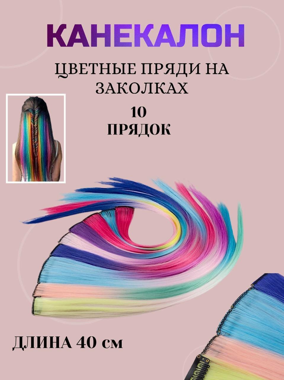 Купить CHARITES Цветной канекалон , цветные волосы, трехцветные пряди на заколках клипсах, набор 10 шт, украшение девочкам
