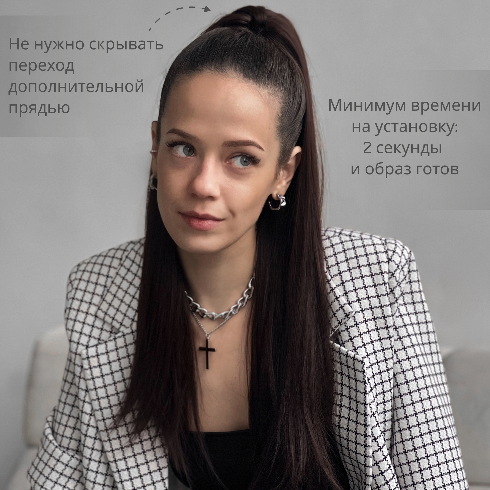 Шиньон накладной хвост на крабе шоколадный накладные волосы 60 см 150гр интересное: