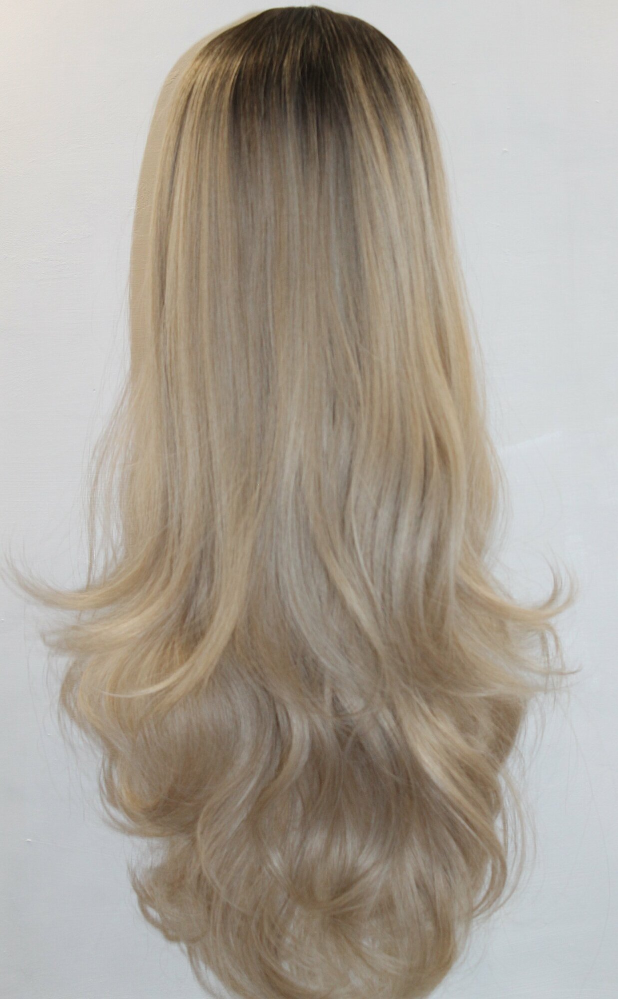 Парик длинный тёплый блонд с челкой омбре интересное: