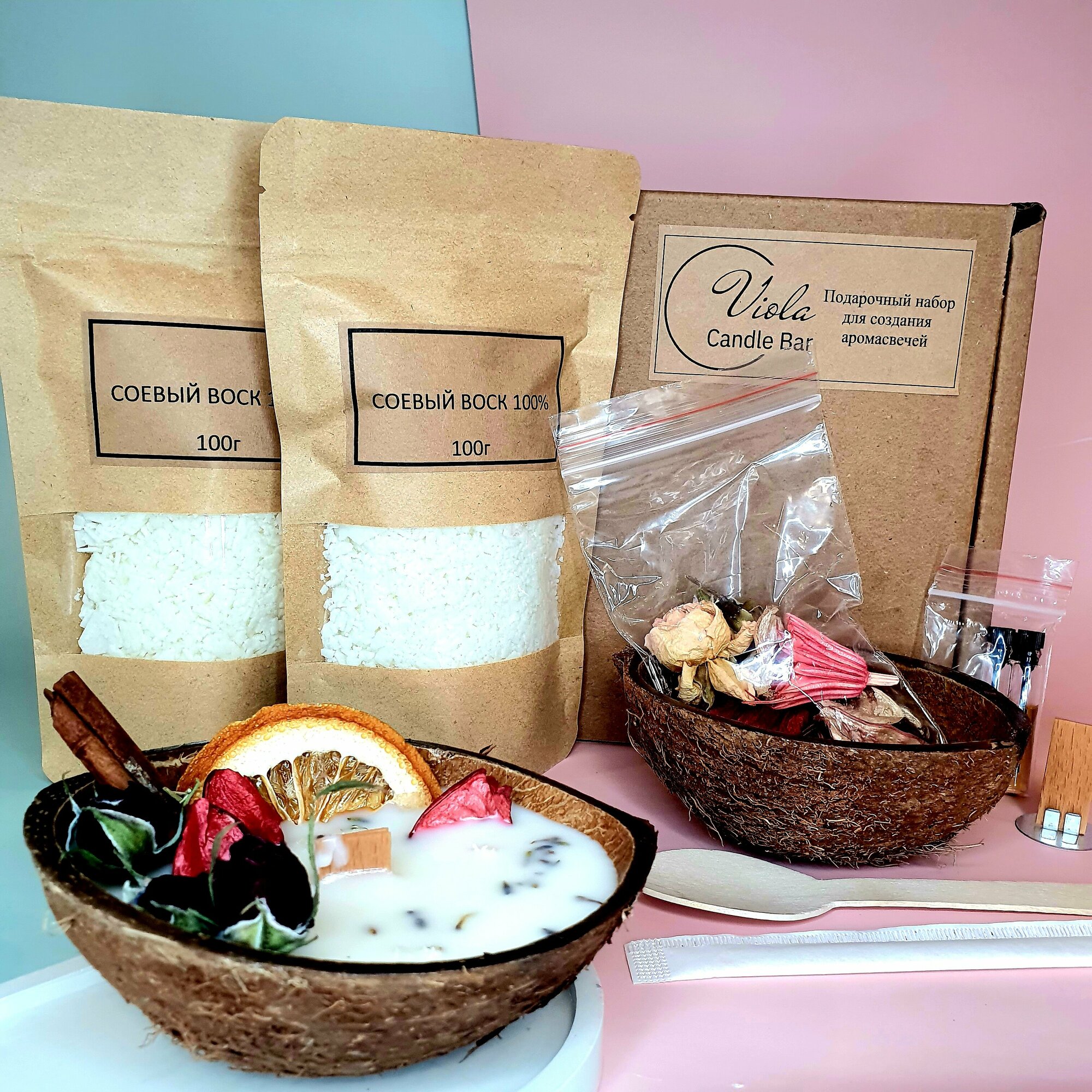 Большой подарочный набор для создания ароматических свечей в кокосе интересное: