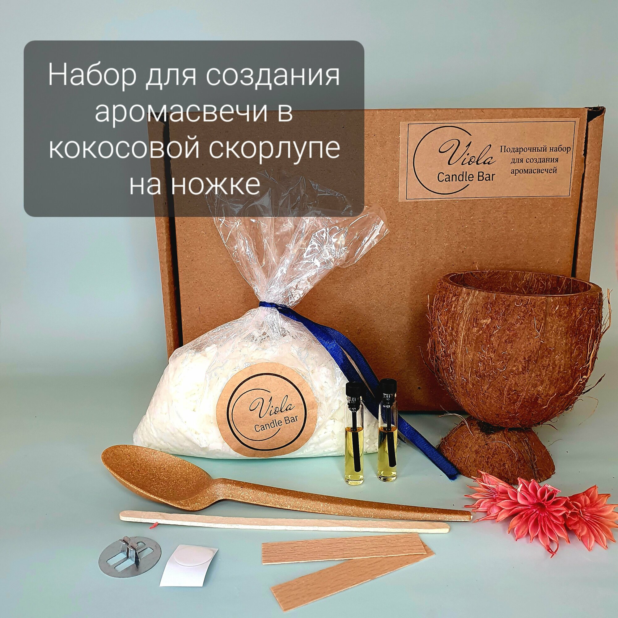 Купить Большой подарочный набор для создания ароматических свечей в кокосе на ножке