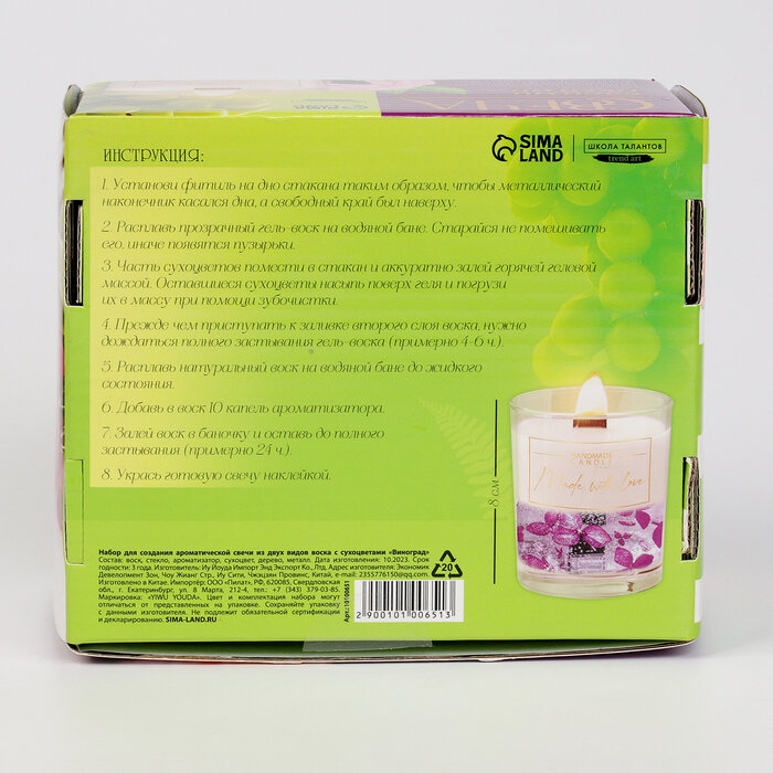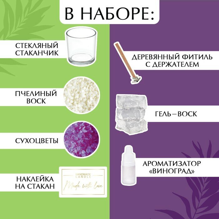 Ниже Вы можете прочитать отзывы на Набор для создания ароматической свечи с сухоцветами «Виноград», 10100651, ознакомится с подробными характеристиками, посмотреть интересные обзоры и фотографии на Набор для создания ароматической свечи с сухоцветами «Виноград», 10100651.