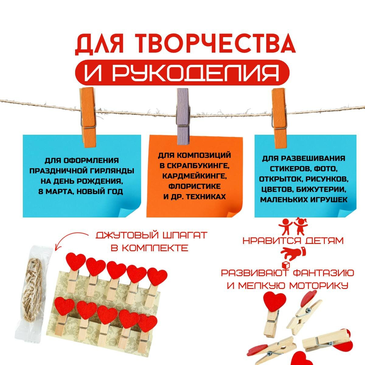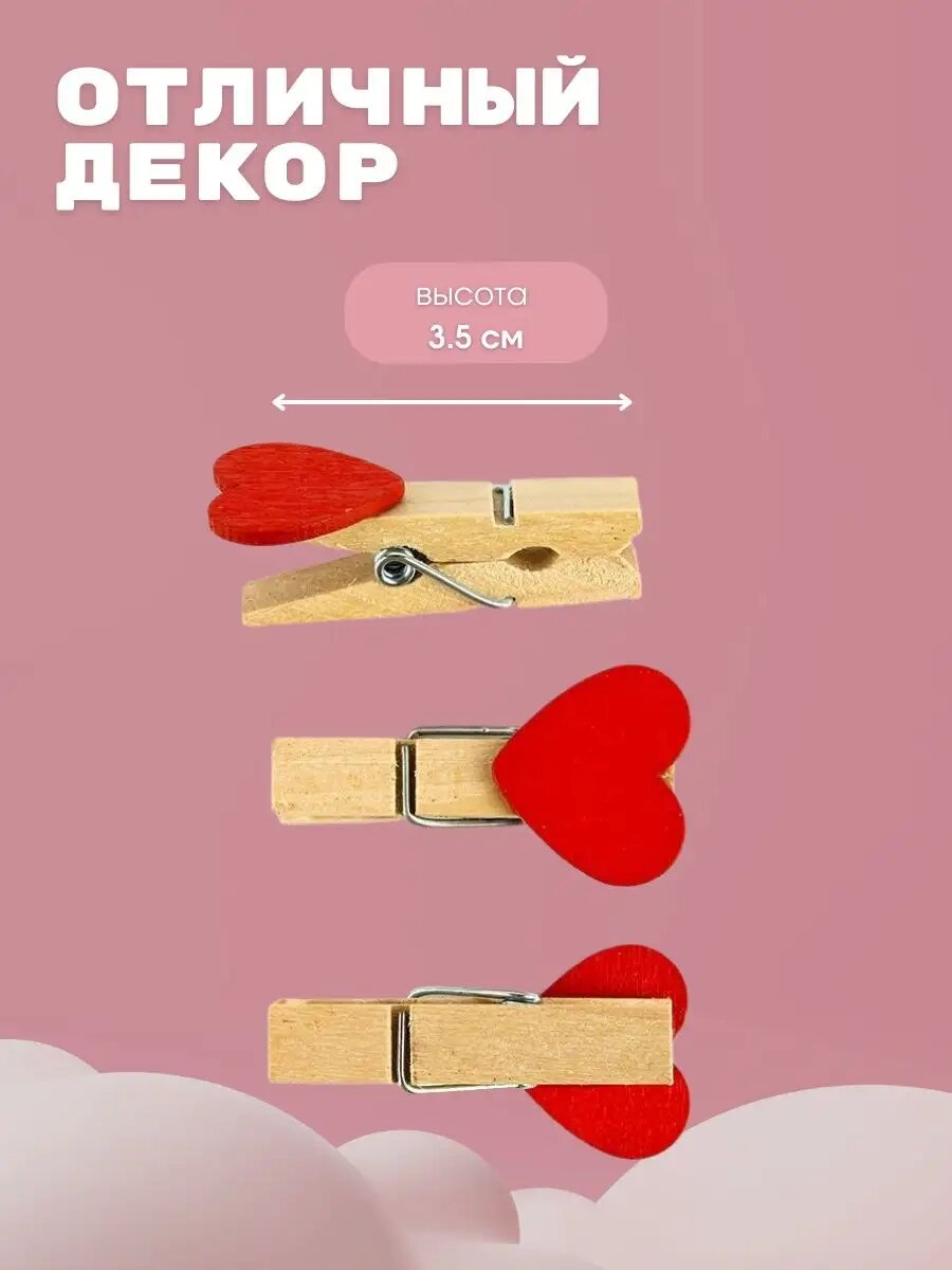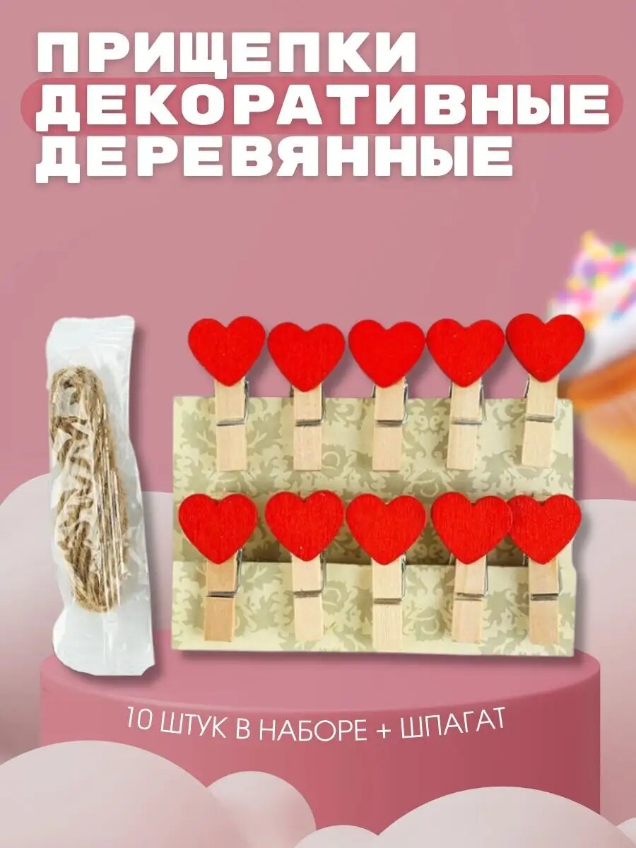 | Комплектация | Прищепки декоративные деревянные "Сердечко" 10 штук + шпагат 1,40 см (набор). Прищепка h 3.5 см |