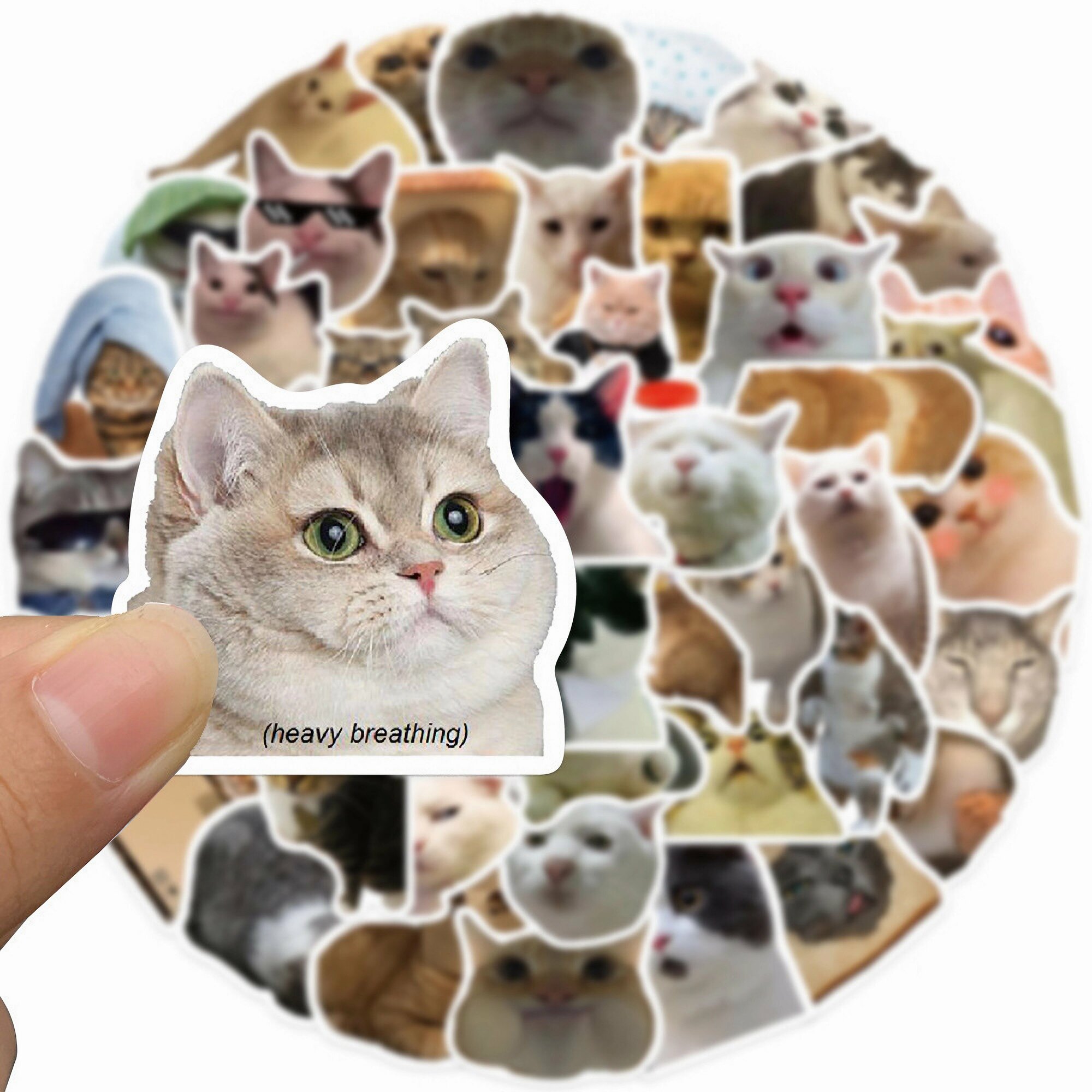 Купить Стикеры Котики - 50 штук. Наклейки виниловые на ноутбук, телефон. Стикерпак для скрапбукинга с котами, мем