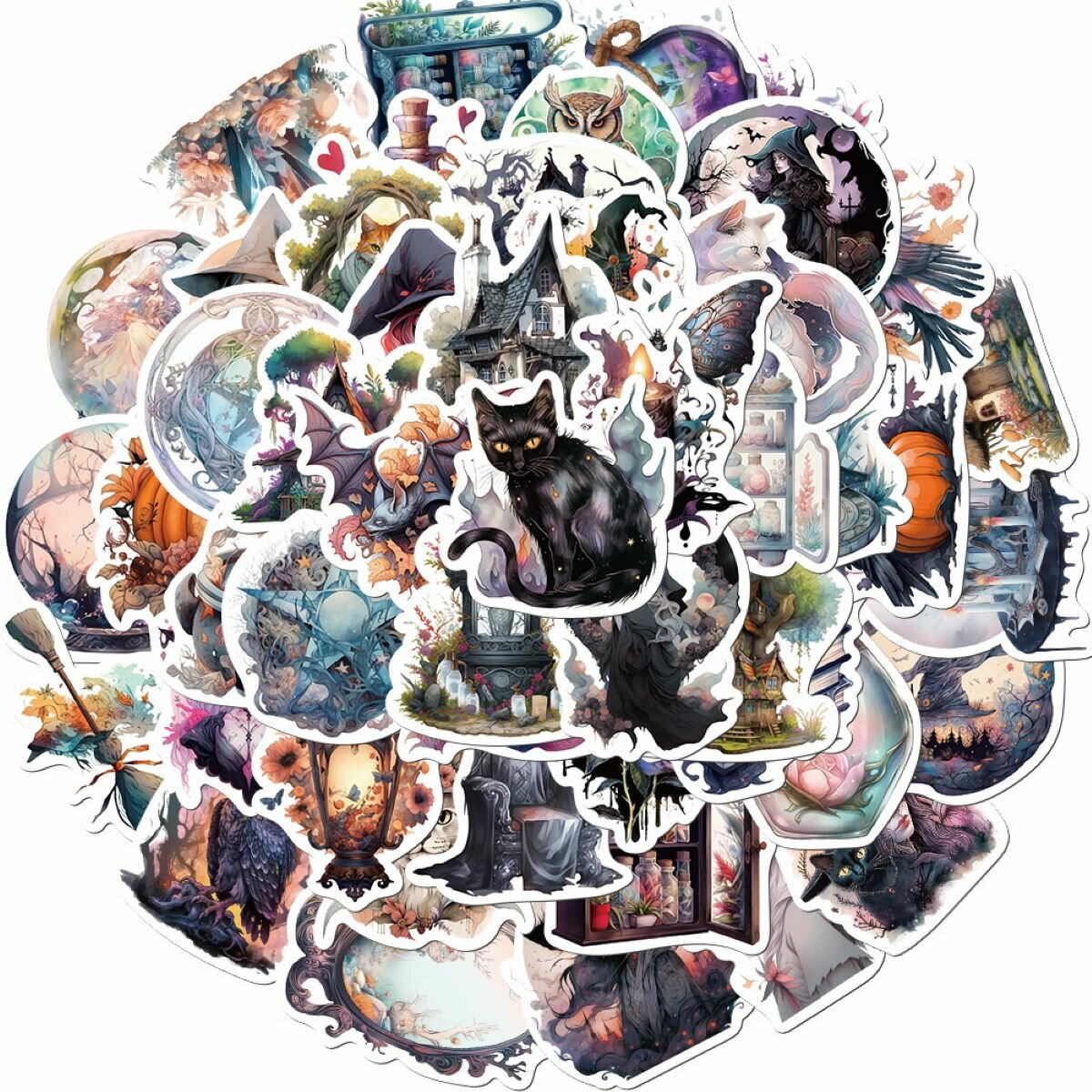 Наклейки на телефон, чемодан, кляссер "Болотная ведьма", винил, многоразовые, 50 шт. Voropaeva11