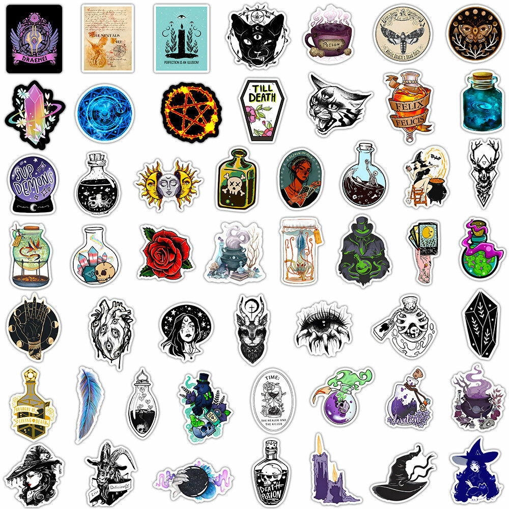 Наклейки на телефон, чемодан, кляссер "Болотная ведьма", винил, многоразовые, 50 шт. Voropaeva11