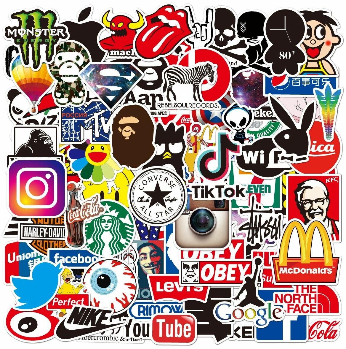 Набор наклеек Логотипы брендов 100 шт, стикеры самоклеящиеся