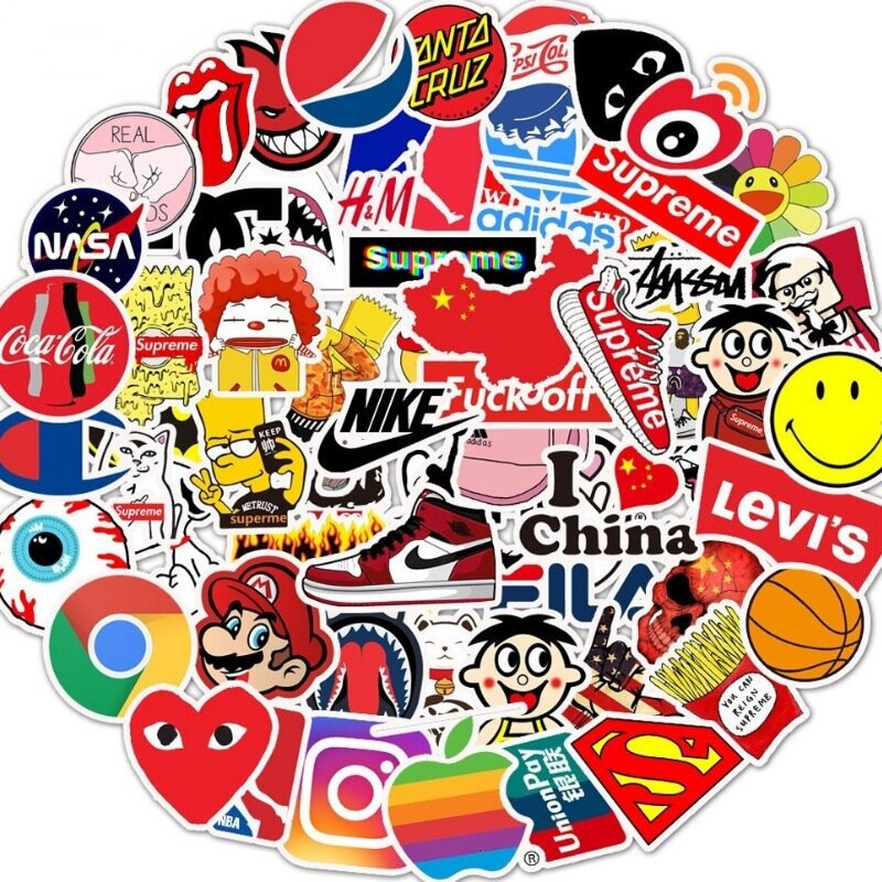 Набор наклеек Логотипы брендов 100 шт, стикеры самоклеящиеся