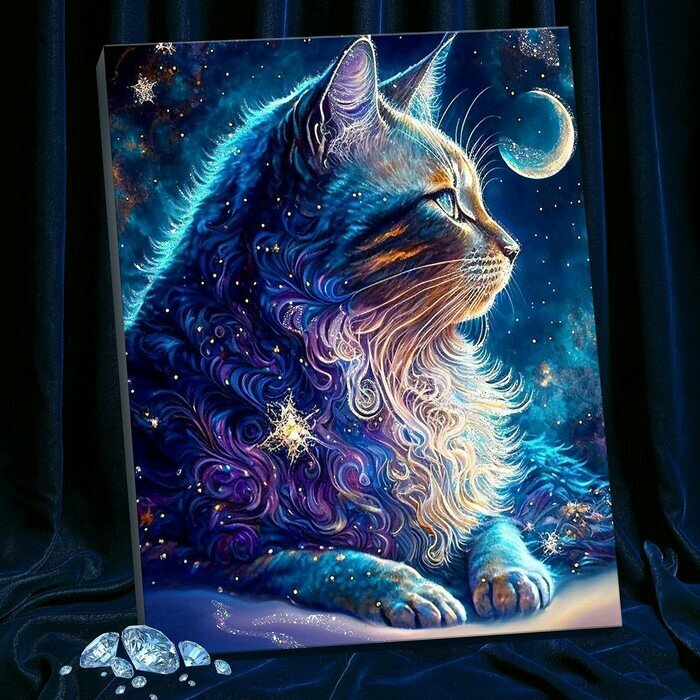 Купить Картина по номерам с кристаллами из хрусталя, 40 × 50 см» Космический кот» 22 цвета
