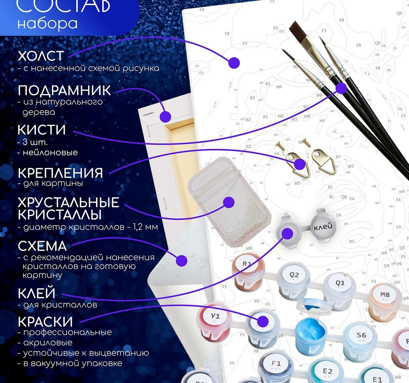 | Дополнительная информация | Картина по номерам с кристаллами из хрусталя |