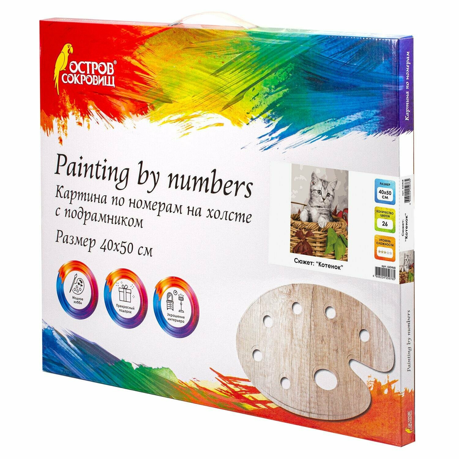 Картина по номерам 40х50 см, остров сокровищ "Котёнок", на подрамнике, акриловые краски, 3 кисти, 662468, 662468