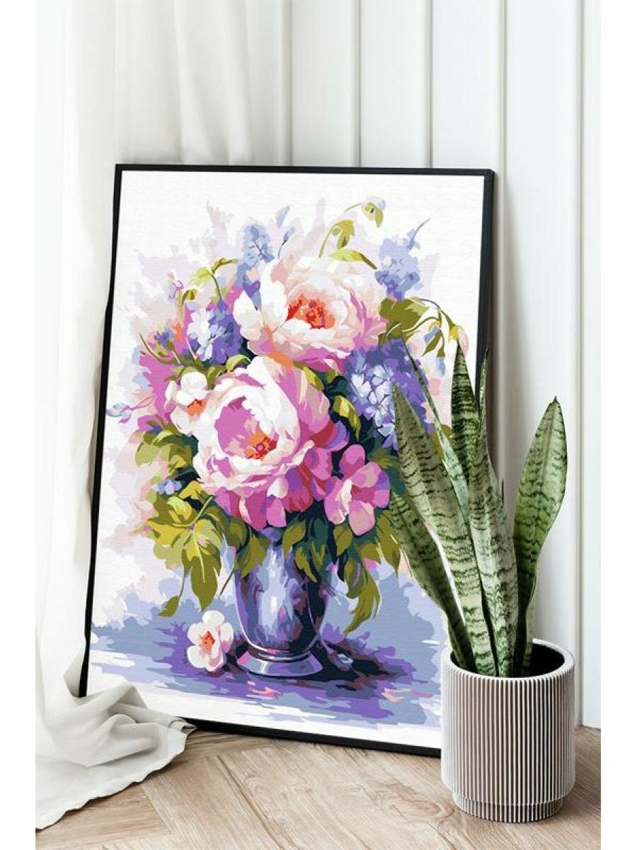 Купить Пионы и сирень в вазе Цветы Букет Натюрморт Маме Интерьерная Раскраска картина по номерам на холсте 40х50