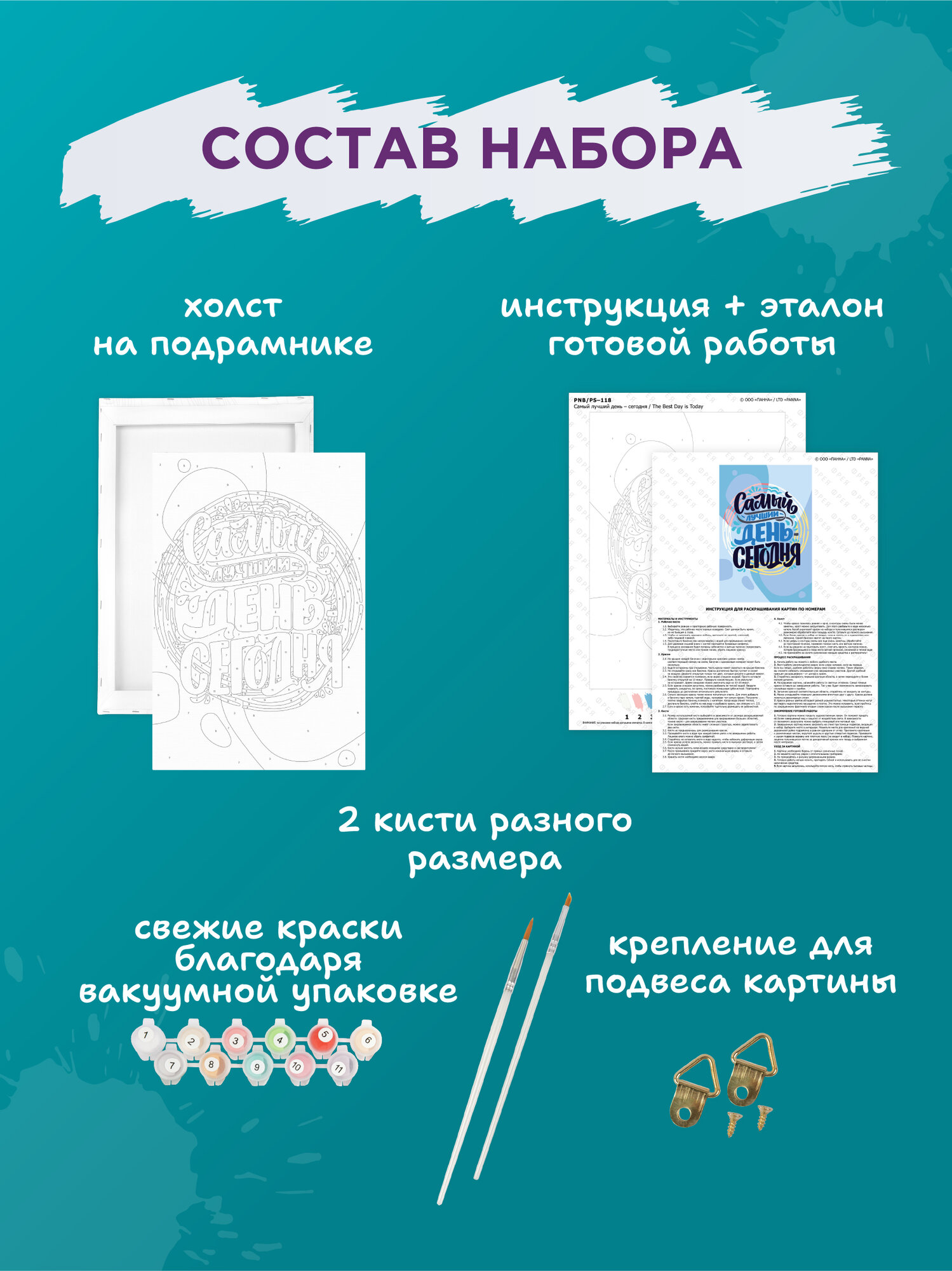 | Особенности | кисти в комплекте / краски в комплекте / репродукция картины |