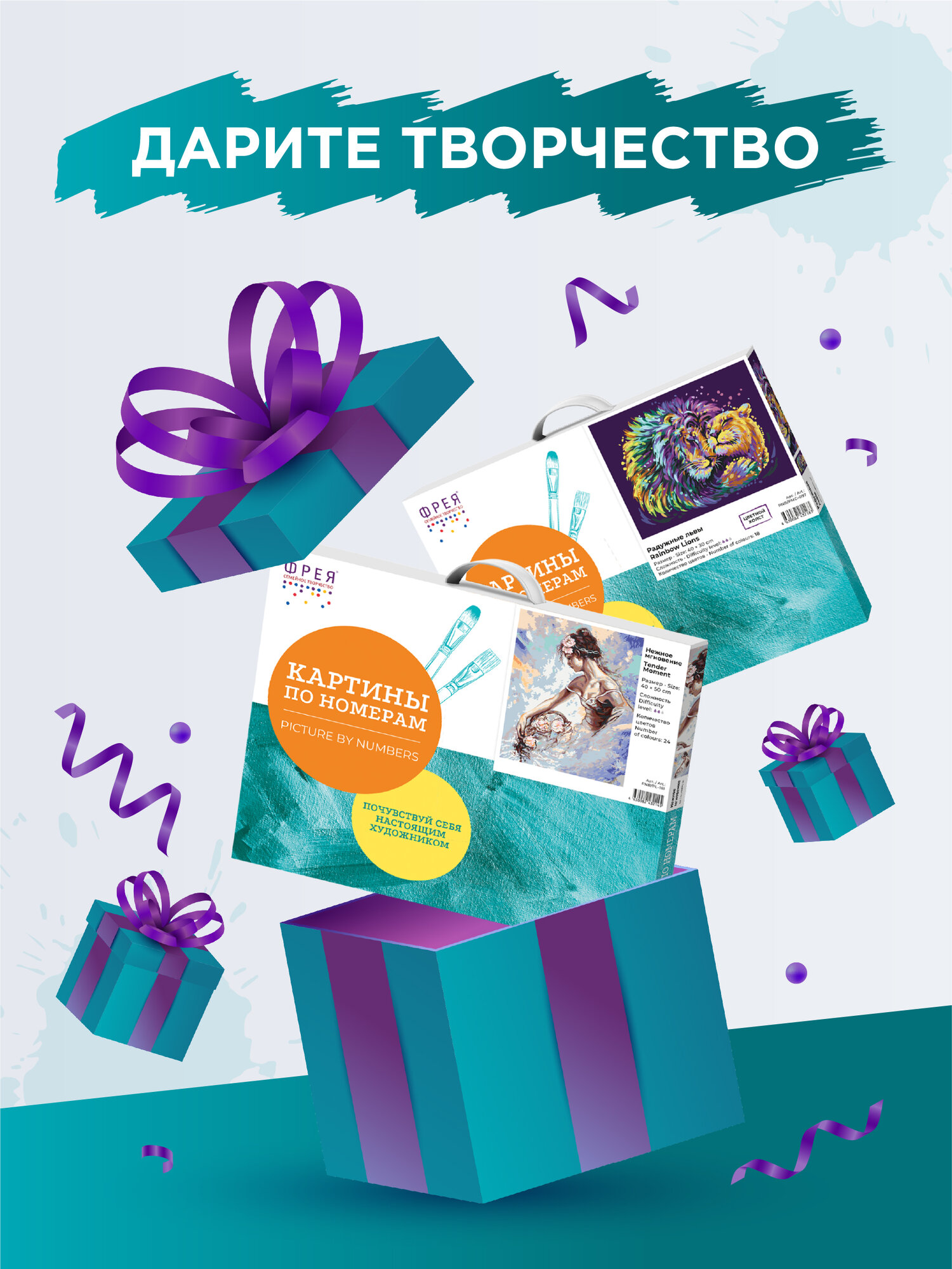 | Особенности | кисти в комплекте / краски в комплекте / репродукция картины |