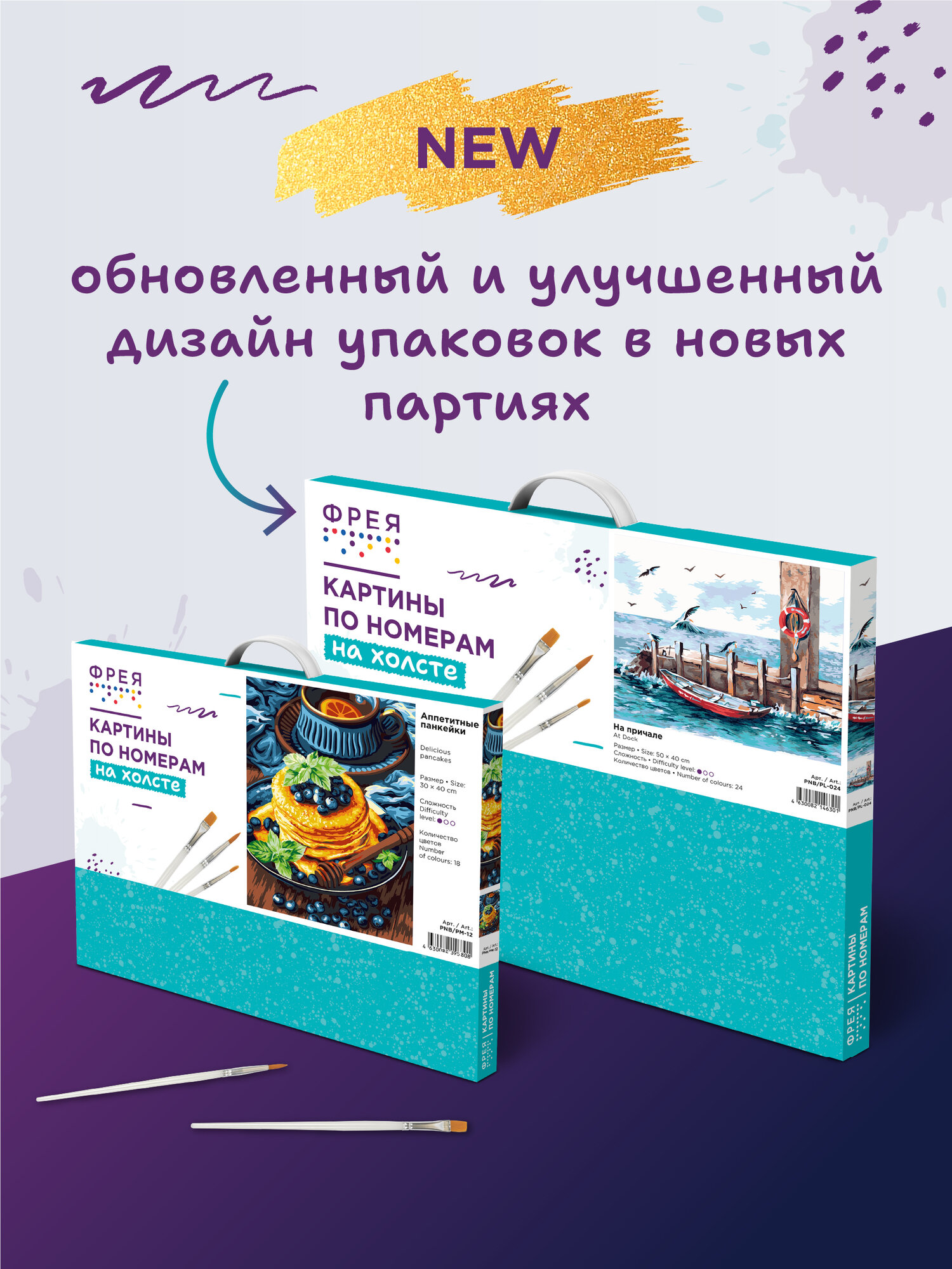 | Особенности | кисти в комплекте / краски в комплекте / репродукция картины |