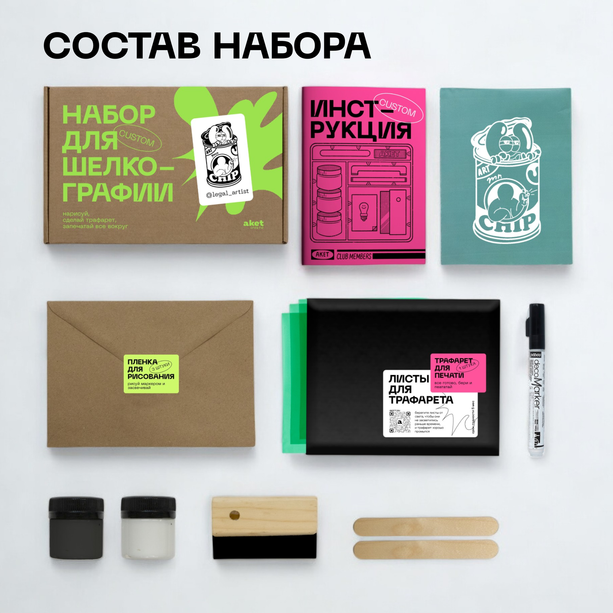 | Подробная комплектация | набор для шелкографии, набор для творчества, набор для печати, шелкография, кастом, набор для кастома |