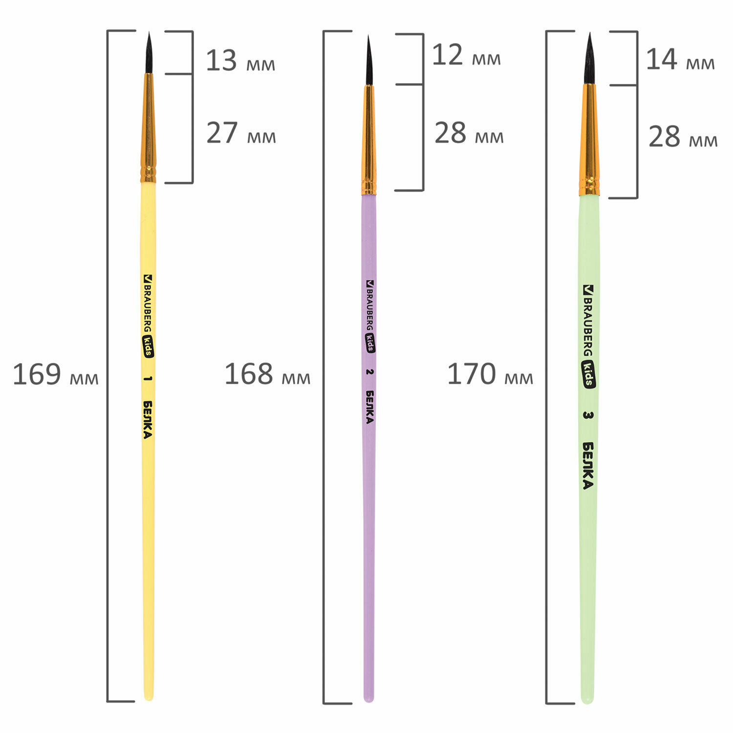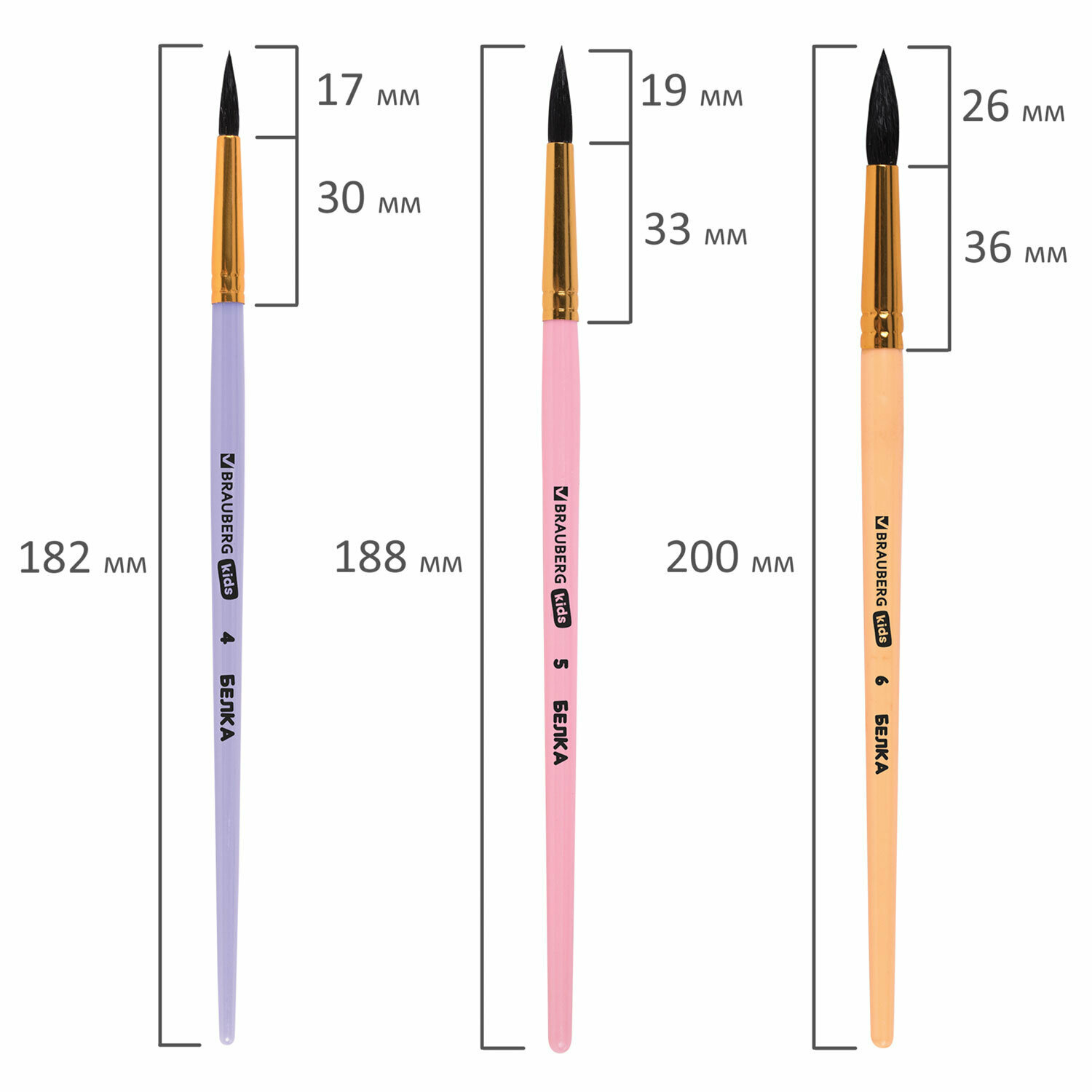 Купить Кисти для рисования в школу набор 6 штук, кисточки круглые № 1, 2, 3, 4, 5, 6, белка, Brauberg Kids, 201083