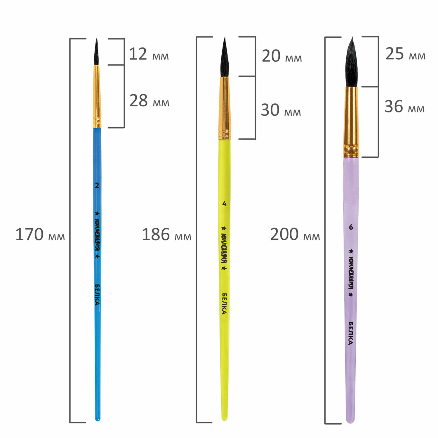 Кисти для рисования в школу набор 3 штуки, кисточки круглые № 2 4 6, белка, Юнландия, 201071 интересное: