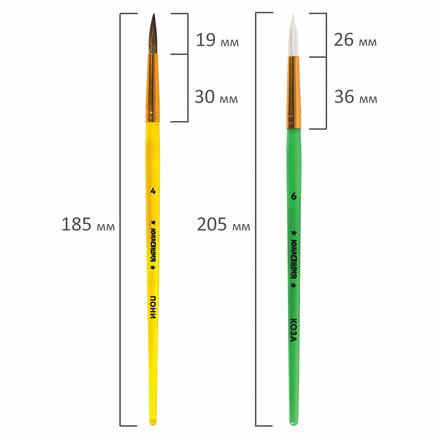 Кисти для рисования в школу набор 6 штук, кисточки круглые № 1 2 3 4 5 6 8, белка, Юнландия, 201082