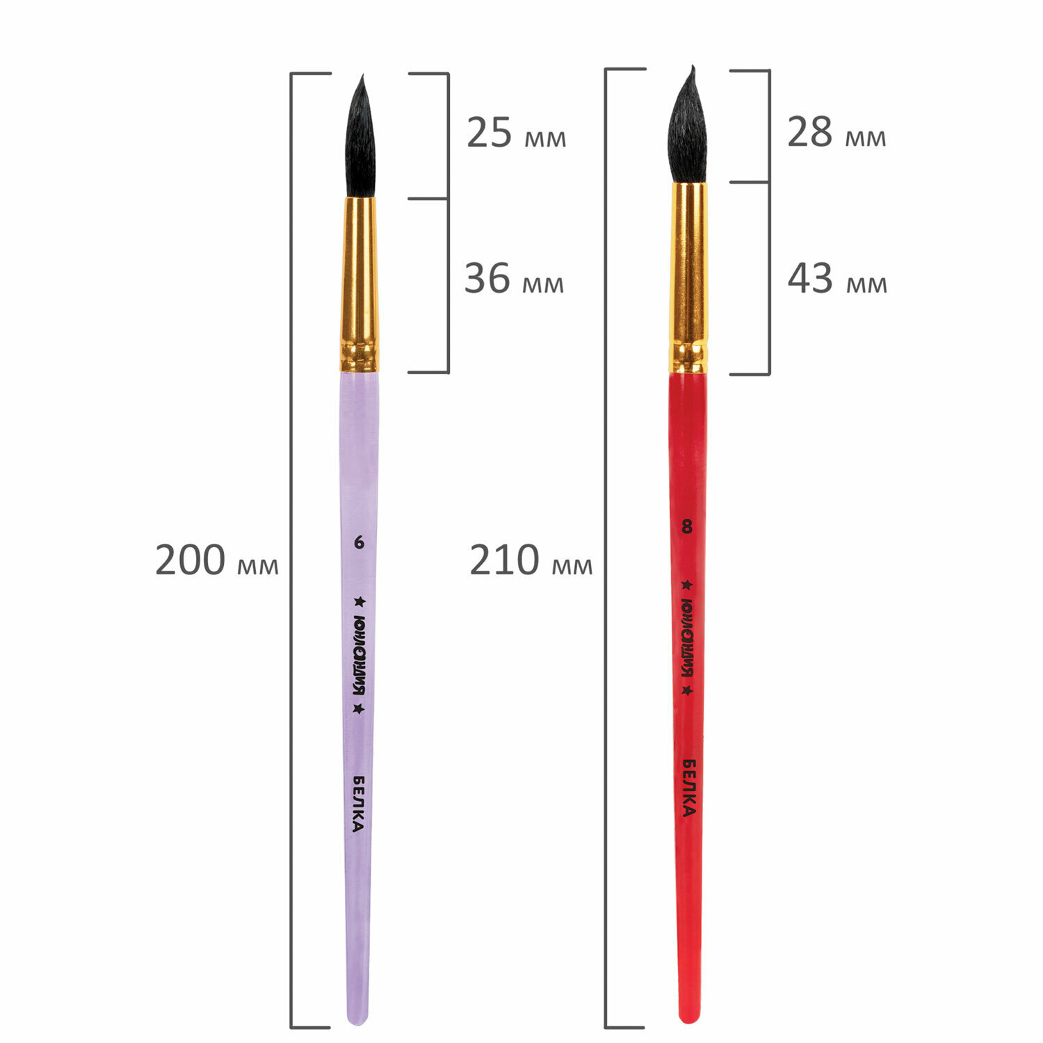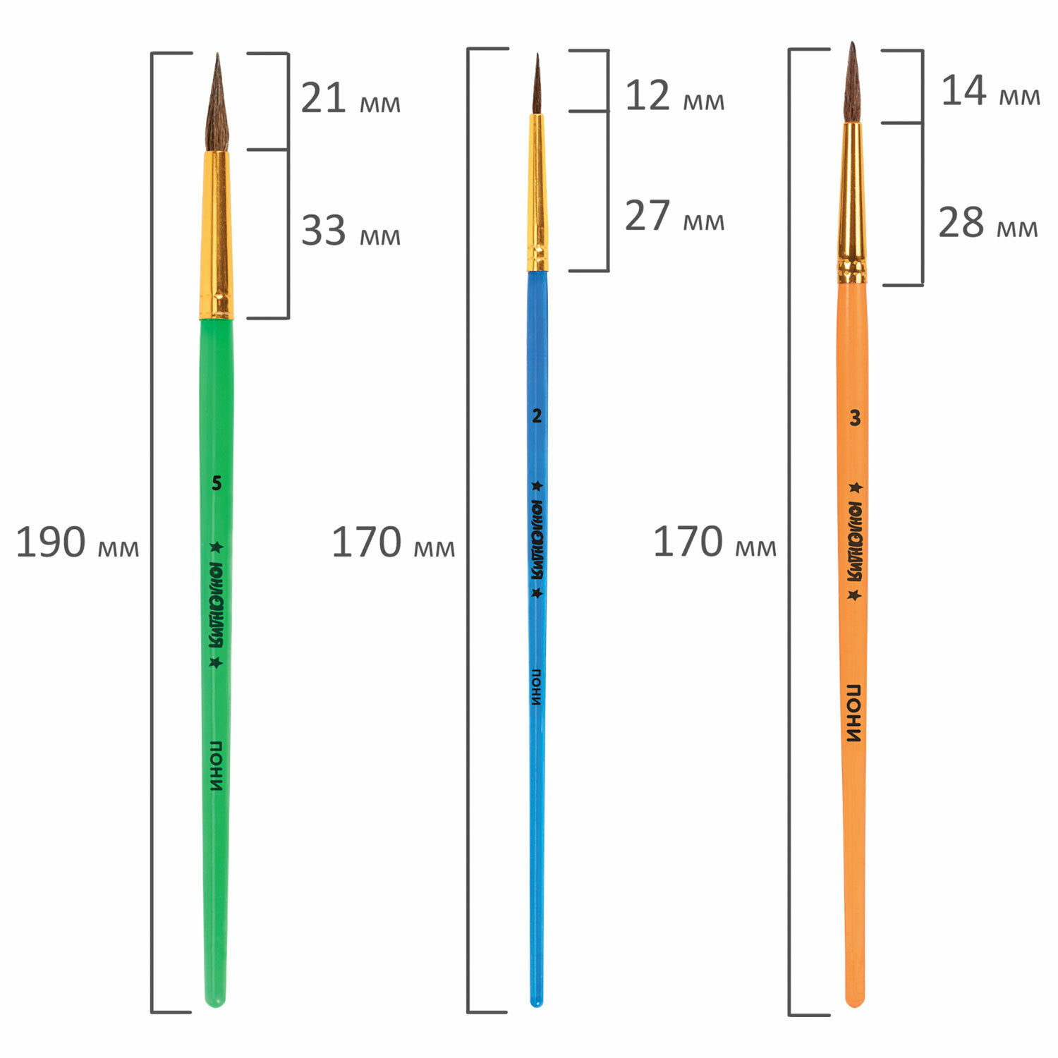 Кисти для рисования в школу набор 5 штук, кисточки круглые № 2 3 5 6 8, пони, белка, Юнландия, 201070 интересное: