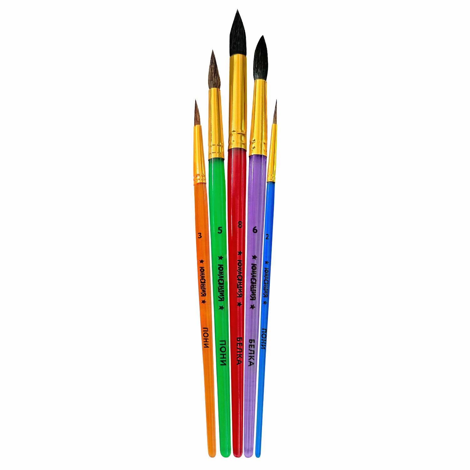 Купить Кисти для рисования в школу набор 5 штук, кисточки круглые № 2 3 5 6 8, пони, белка, Юнландия, 201070