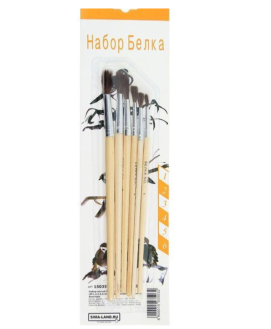 СохранитьНабор кистей, белка круглые, 6 шт.: №1, 2, 3, 4, 5, 6, с деревянными ручками, блистер интересное: