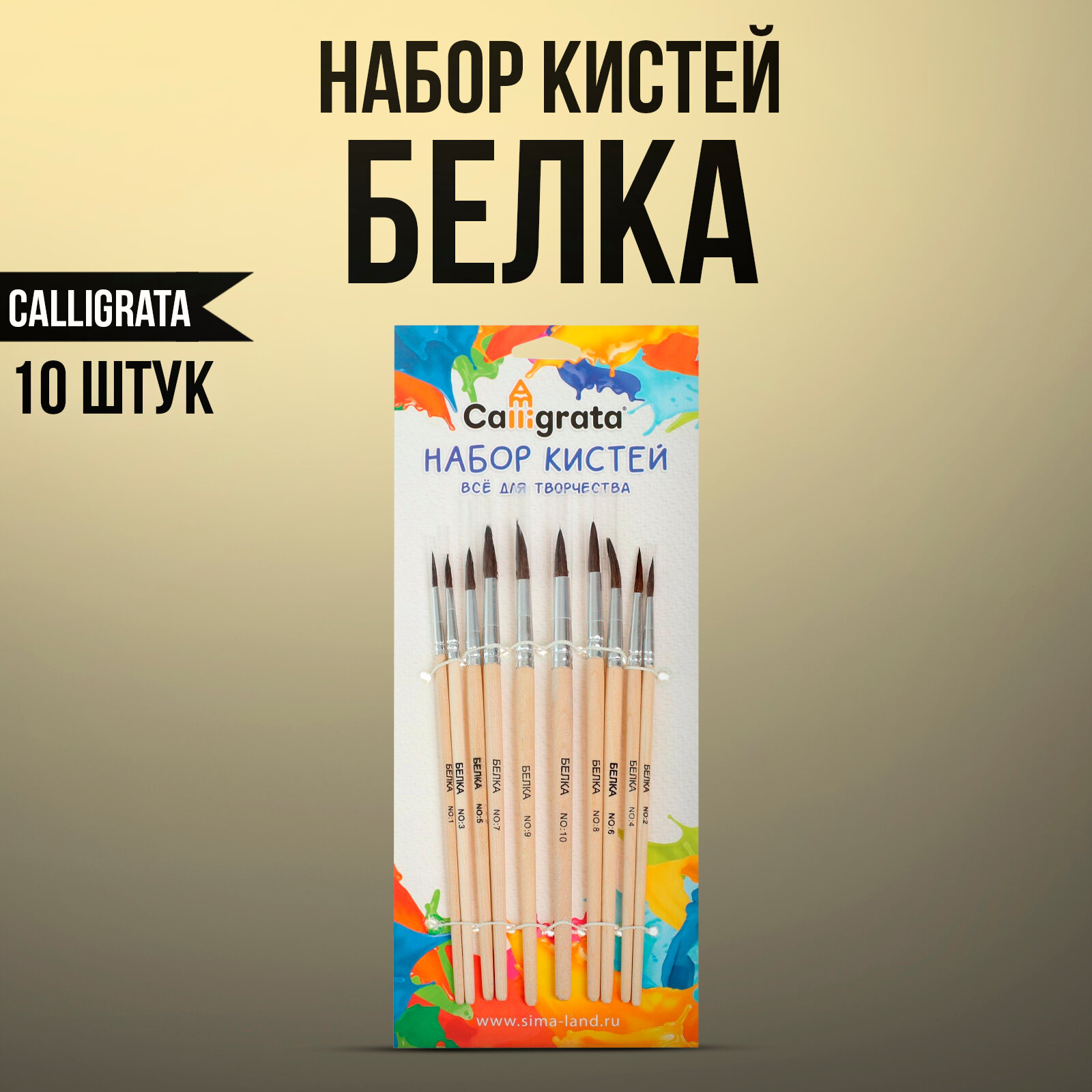 Набор кистей белка, Calligrata, круглые, 10 штук (№1,2,3,4,5,6,7,8,9,10) с деревян ручками, в блистере