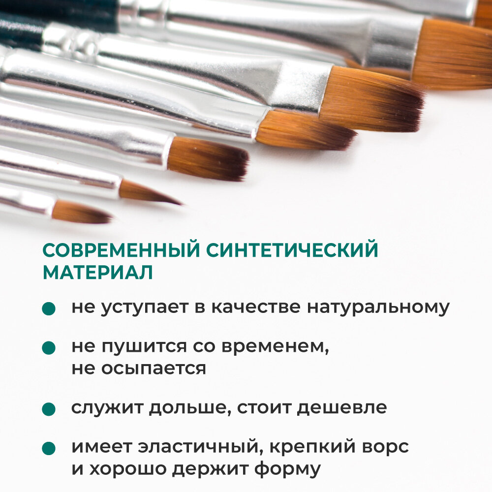 Набор кистей синтетика плоские 5 штук (№2,4,6,8,10), в блистере 7711371
