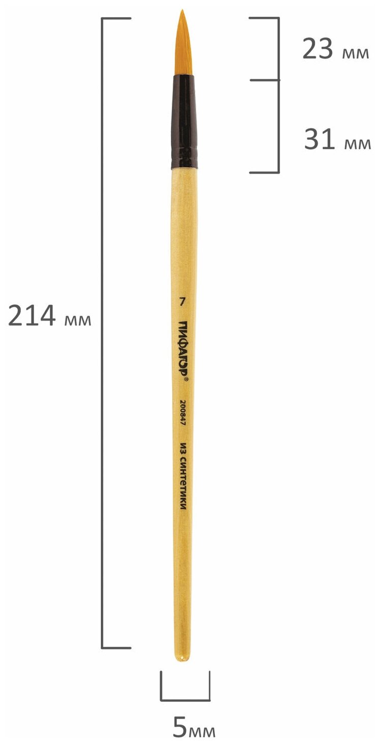 Кисть / кисточка для рисования Пифагор, синтетика, круглая, № 7, 200847 интересное: