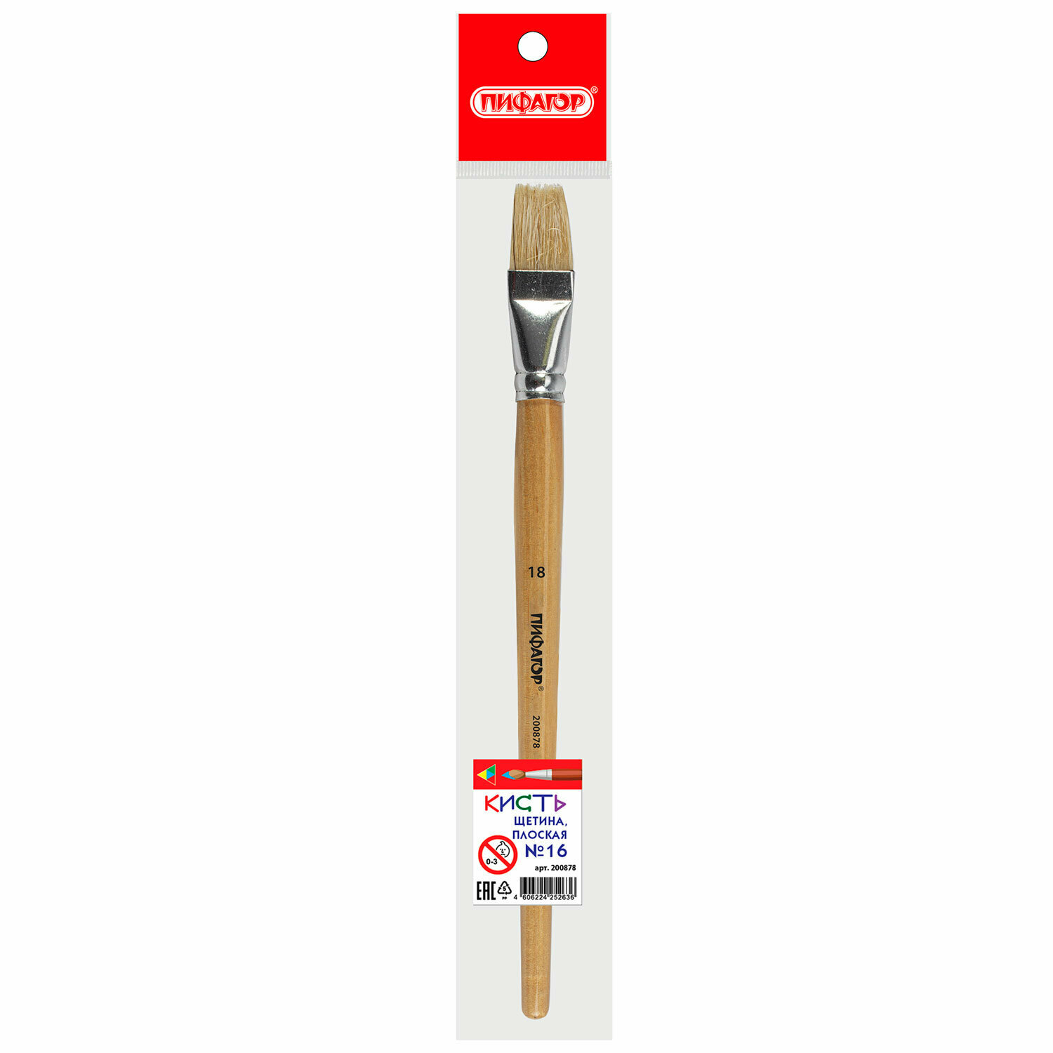 Кисть / кисточка для рисования Пифагор, щетина, плоская, № 18, 200878 интересное: