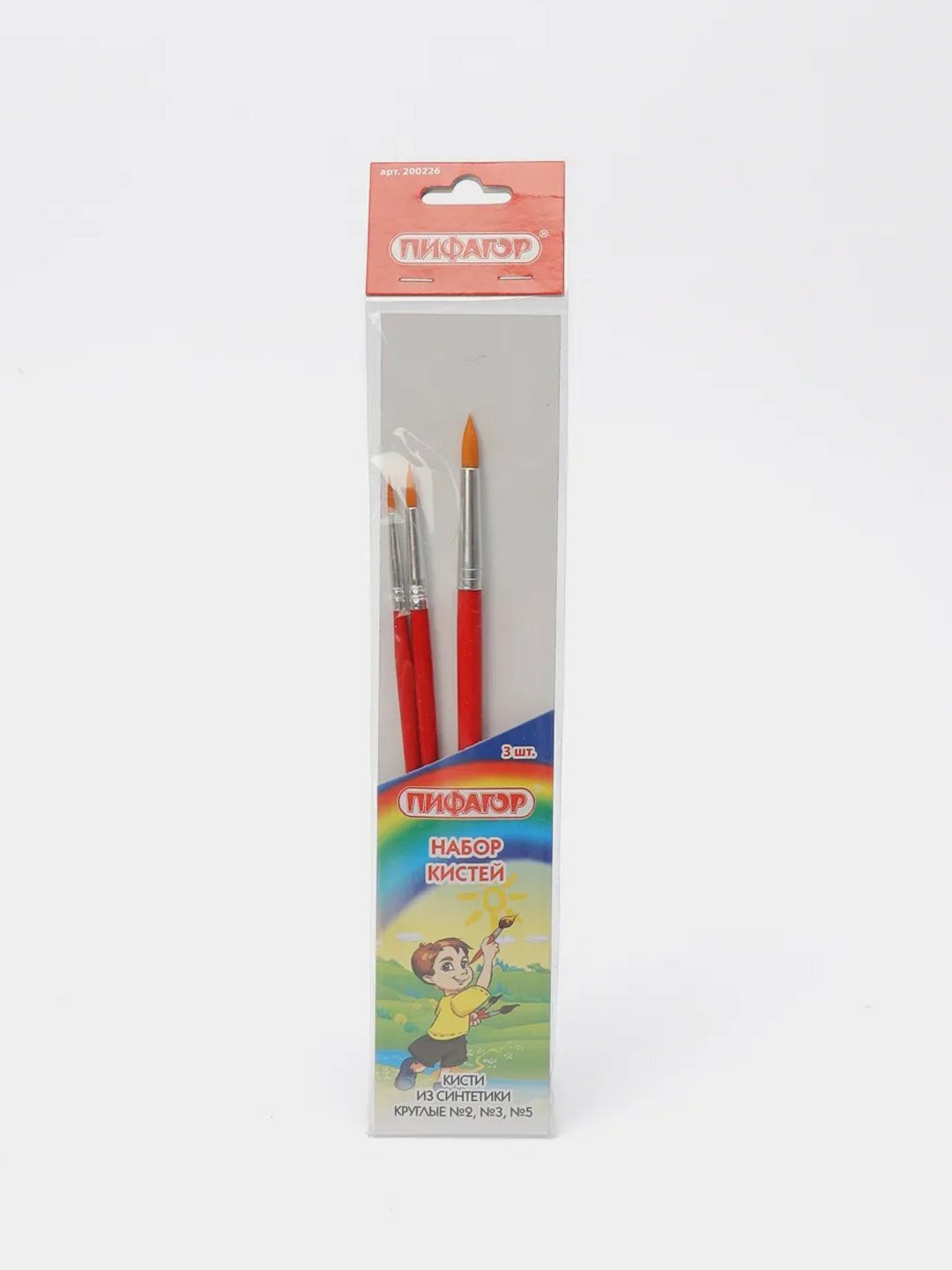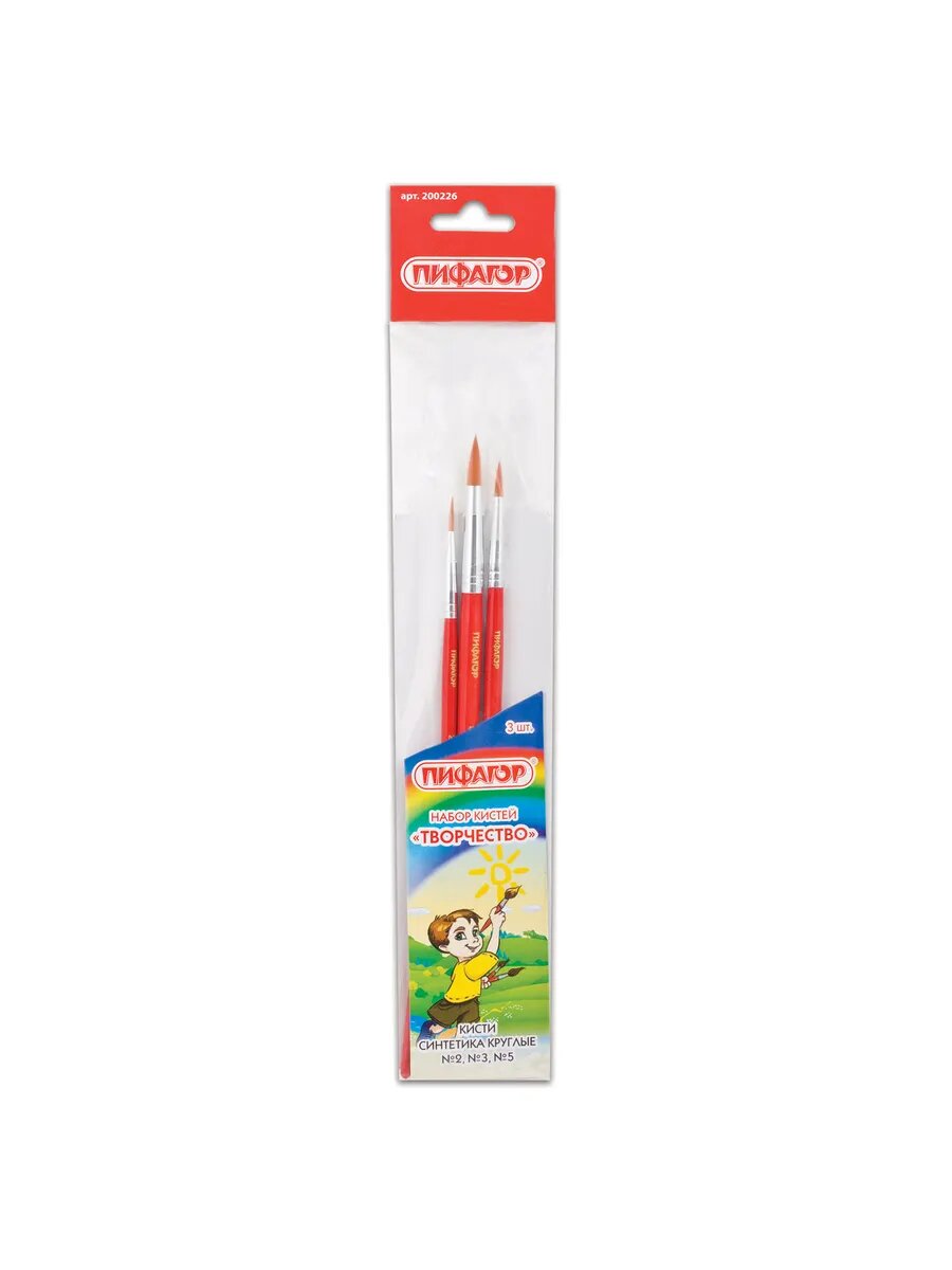 Купить Кисти / кисточки для рисования Пифагор, набор из 3 штуки, (синтетическая круглая № 2,3,5), 200226