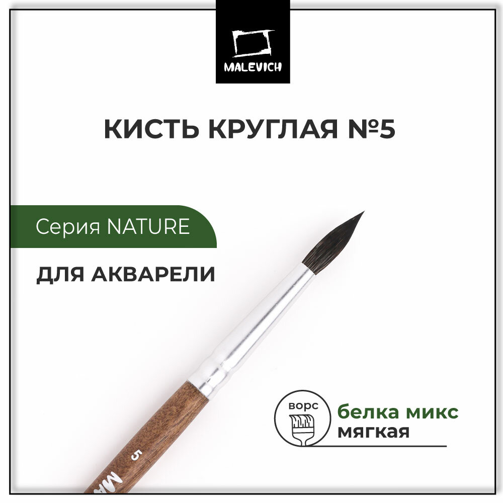 Купить Кисть из белки микс Малевичъ Nature, круглая, №5